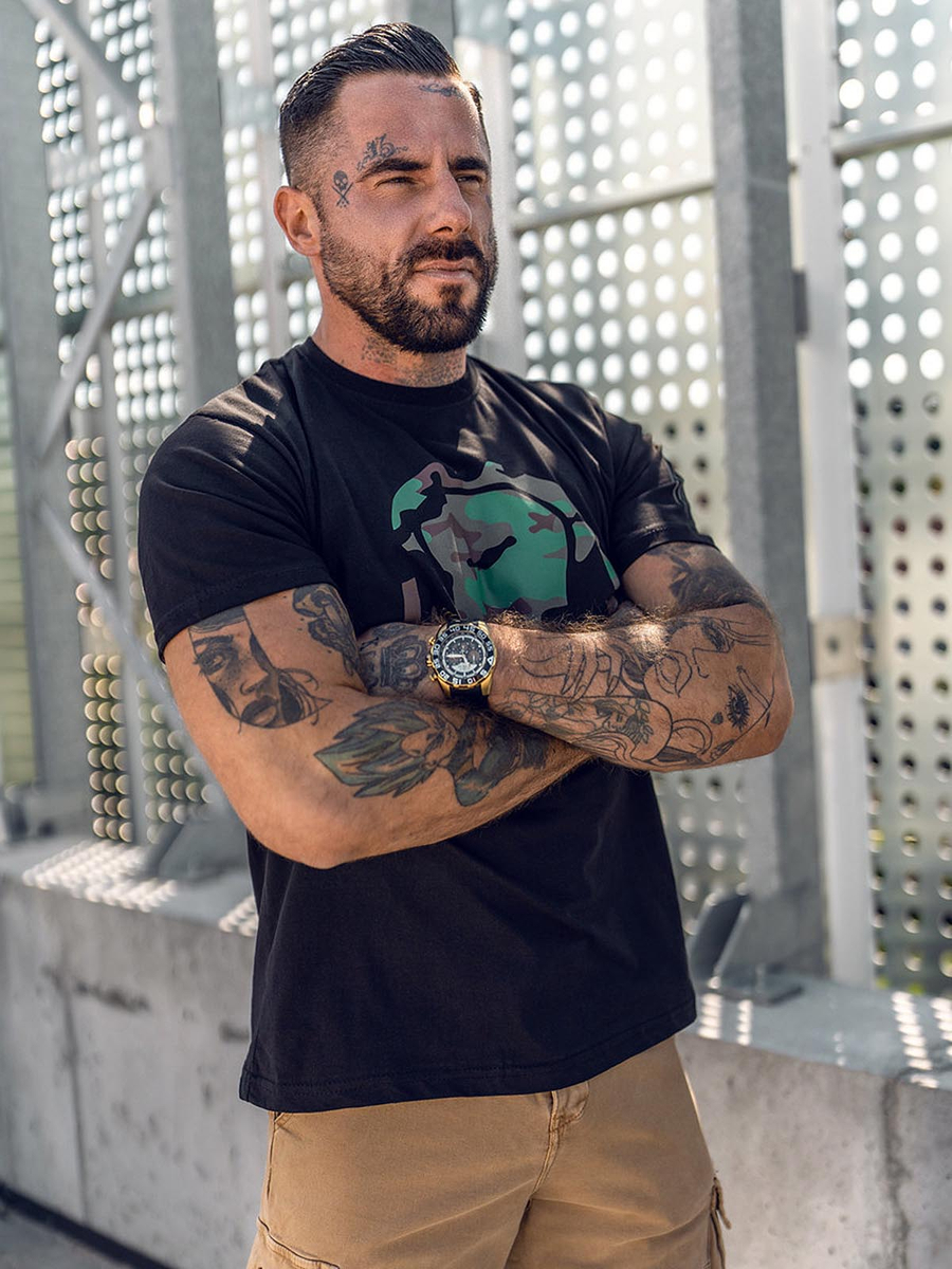 A Bolf 192379A fekete férfi mintás póló tökéletes választás azoknak a férfiaknak, akik értékelik a divatot és a kényelmet egyben. Kiváló minőségű pamutból készült, puha és kellemes tapintású. Kerek nyakkivágása és testhezálló szabása tökéletesen kiemeli az alakot anélkül, hogy korlátozná a mozgást. Az elülső oldalon található minta karaktert és egyéniséget kölcsönöz. Akár barátokkal mész szórakozni, akár dolgozni, akár vásárolni mész, ez a póló tökéletes lesz számodra. Könnyen kombinálható más ruhadarabokkal. Jól illik farmerhez, kocogónadrághoz és rövidnadrághoz.