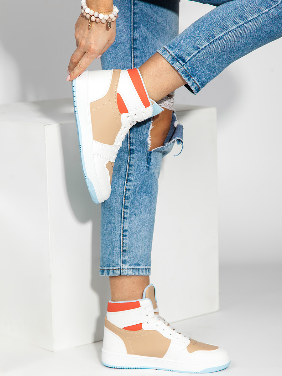 Bézs színű női sneaker - Bolf B527- rendkívúl stílusos és kényelmes választás minden nő számára. A minimalista dizájnnak és a semleges színnek köszönhetően nagyszerűen passzol számos casual és elegánsabb stilizációhoz. Jól párosítható farmerrel és sportdzsekivel. A magas minőségű anyagokból készült, mely tartós és kényelmet biztosít viselés közben. A cipő felső része a boka fölé ér, ami tovább növeli a stabilitást és a komfortot járás közben,a fűzés lehetővé teszi a cipő tökéletes illeszkedését a lábfejhez. A cipő belseje puha anyaggal van bélelve, amely megakadályozza a láb felhorzsolását és kényelmet biztosít az egész napos viselés során.