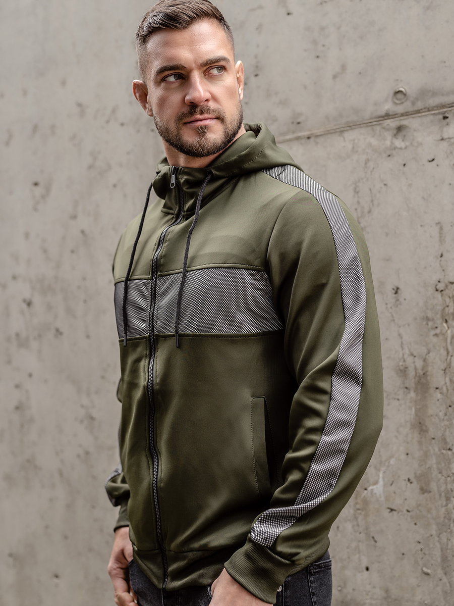 A khaki színű, nyitható, férfi melegítőfelső kapucnival -Bolf 27B8121A- évszaktól függetlenül tökéletesen megállja a helyét! Cipzározható, klasszikus szabású pulcsi, praktikus, állítható kapucnival. A pulcsi alsó része és az ujjai passzéval vannak ellátva, ennek köszönhetően melegen tart és védelmet nyújt a szél ellen a hűvösebb napokon. Az elején és az ujjakon található dizájnos nyomat divatossá teszi a pulcsit. Pulcsi, két zár nélküli, oldalsó zsebbel Nagyon kellemes tapintású melegítőanyagból készült. Hétköznapokon ugyanúgy megállja a helyét, mint sportolás közben. Melegítőnadrággal klasszikus, sportos kinézetet biztosítasz. A pulcsi a hétköznapokon is nagyszerűen párosítható farmerral, pólóval és bőrdzsekivel.