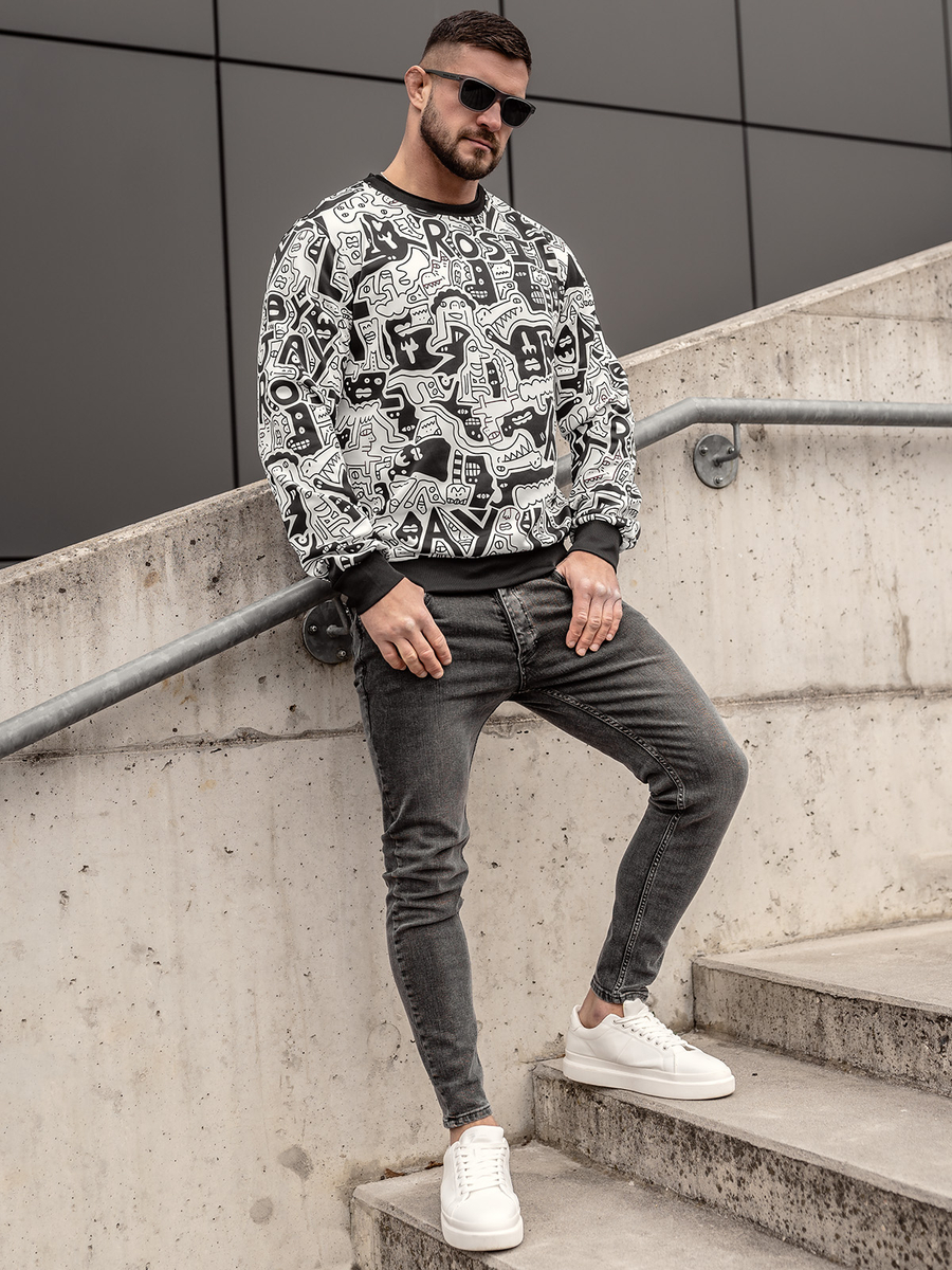 A felhasználók véleménye Mintás férfi melegítőfelső kapucni nélkül fekete-fehér színben Bolf 8B1133A