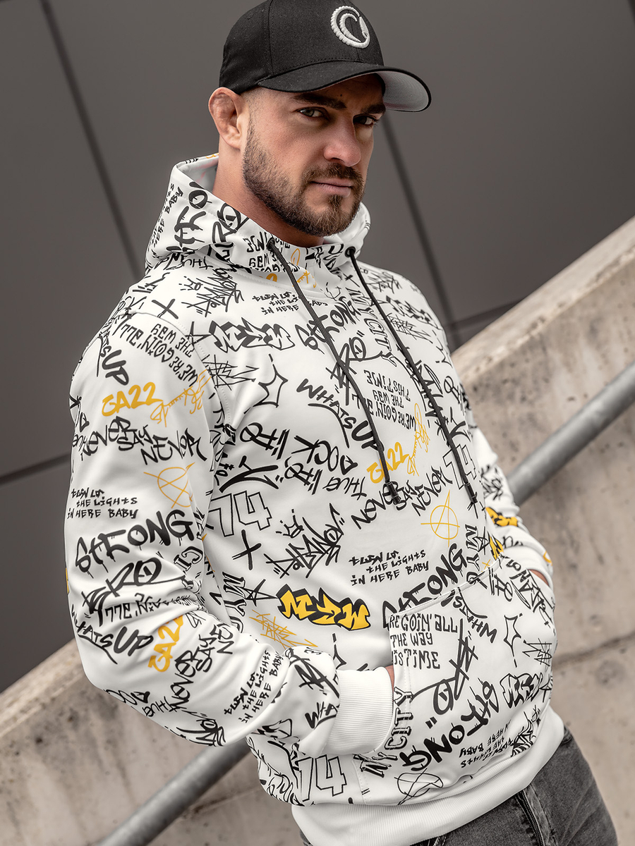 A felhasználók véleménye Fehér színű kapucnis kenguruzsebes férfi melegítőfelső mintával Bolf 8B1101A