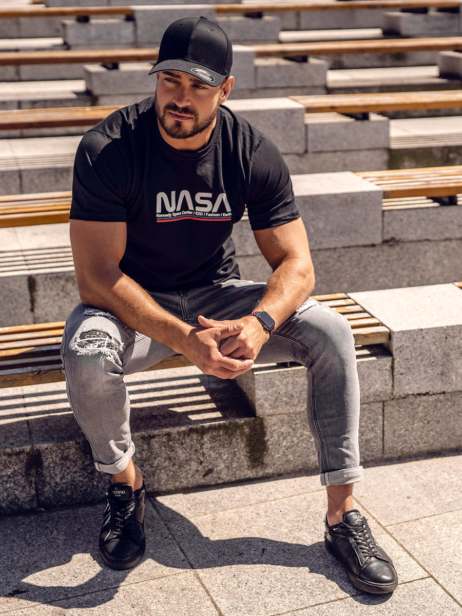 A felhasználók véleménye Fekete pamut férfi póló mintával Bolf 14749A