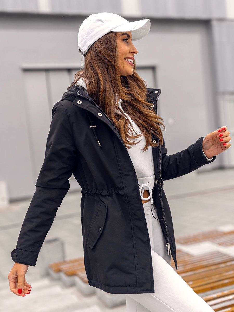 A felhasználók véleménye Fekete női átmeneti kapucnis parka Bolf 7038A