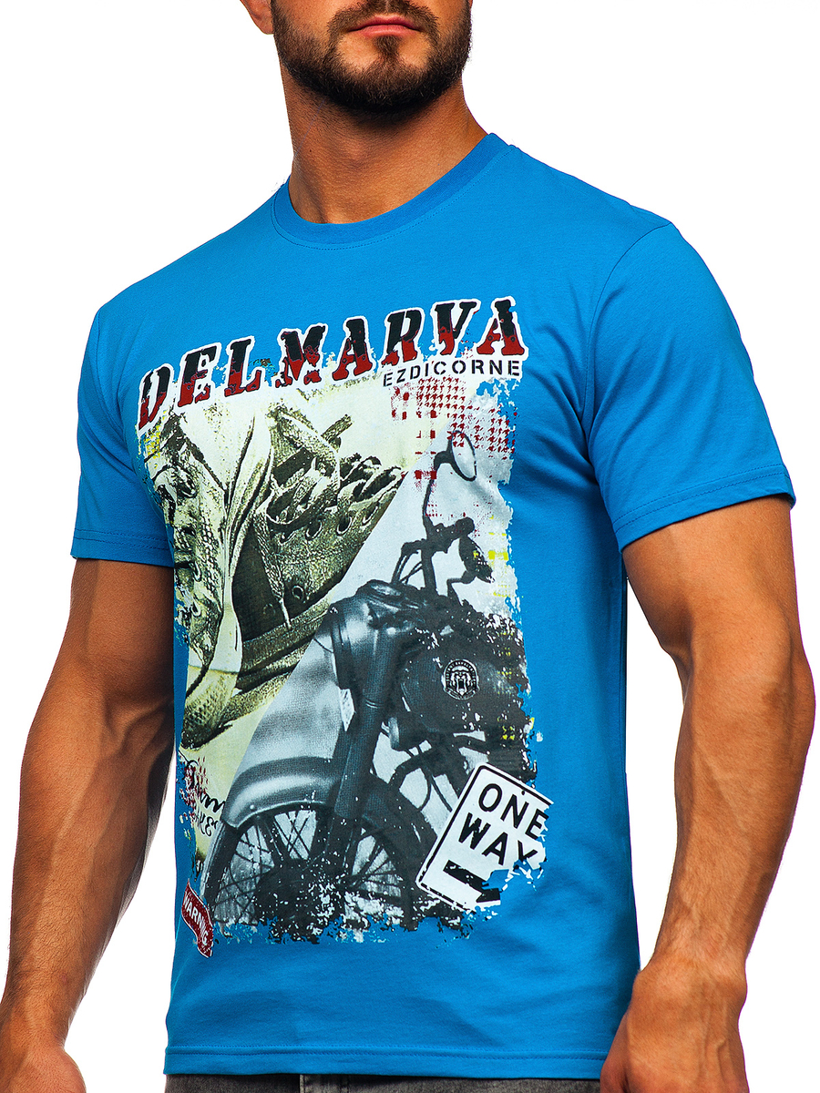 A felhasználók véleménye Égszínkék színű férfi pamutpóló mintával Bolf 143008