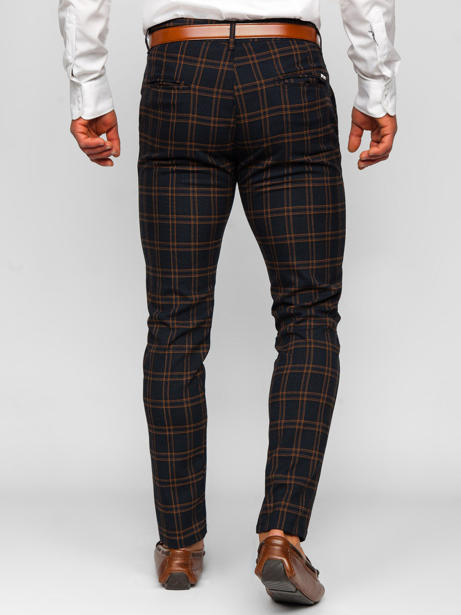 A felhasználók véleménye Sötétkék anyagból készült férfi kockás chino nadrág Bolf 0049