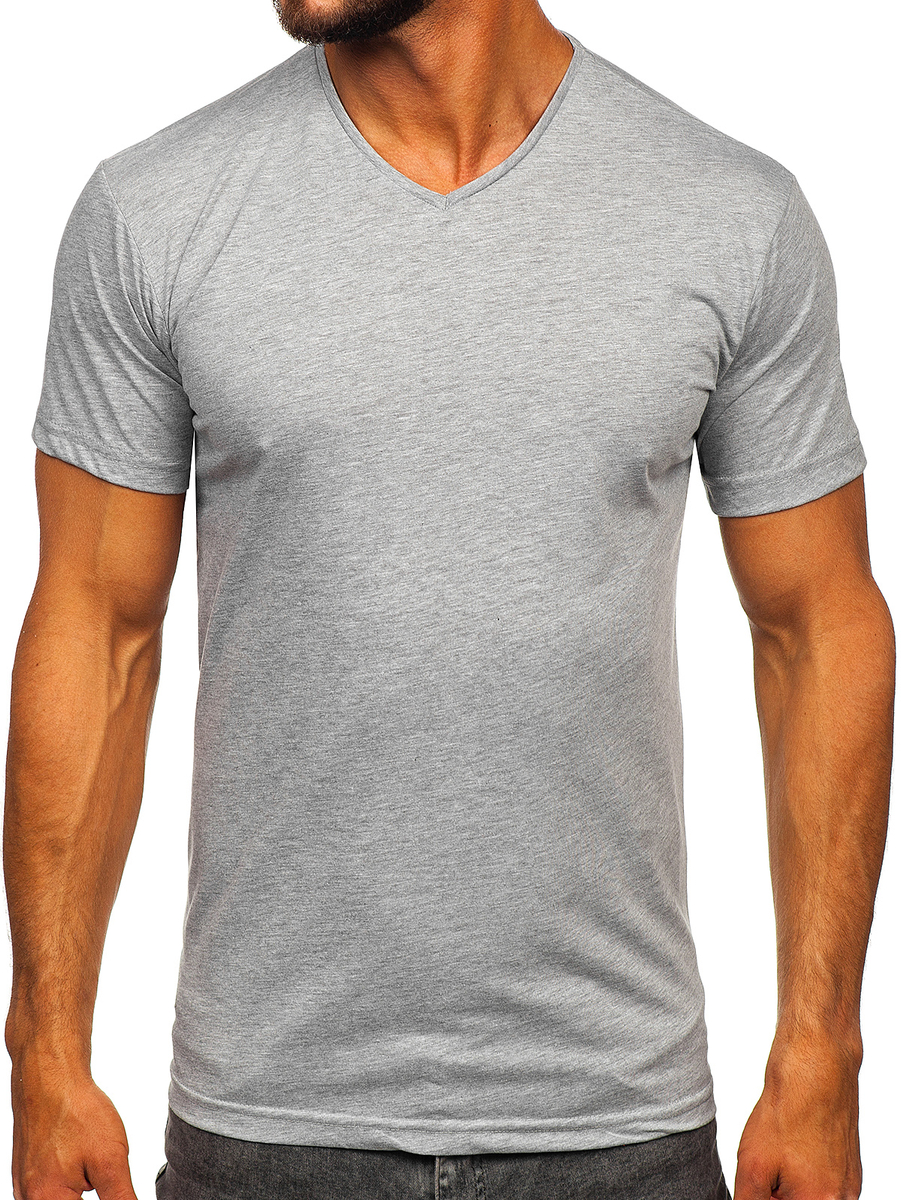 A felhasználók véleménye V-nyakú férfi póló minta nélkül szürke színben Bolf 192131