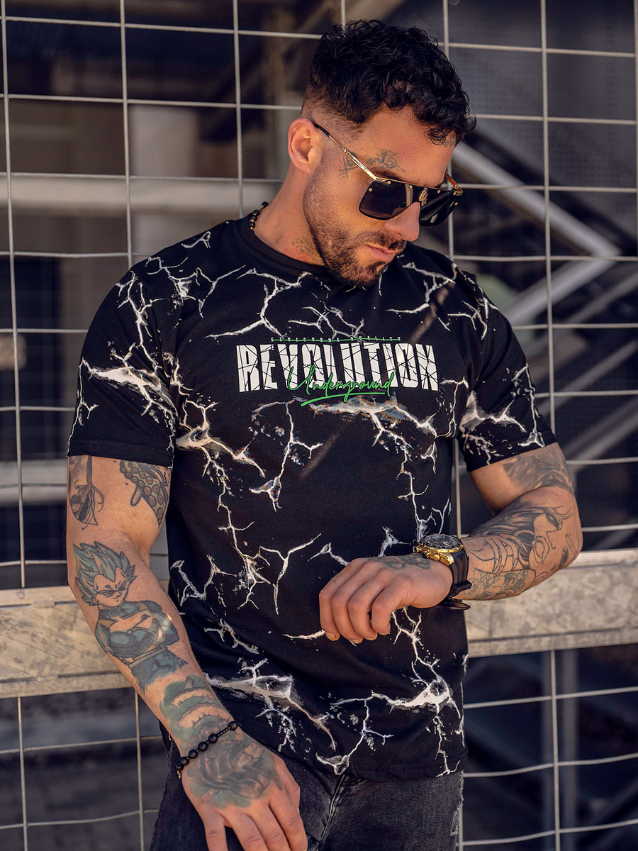 A felhasználók véleménye Fekete színű pamut férfi póló mintával Bolf 14717A