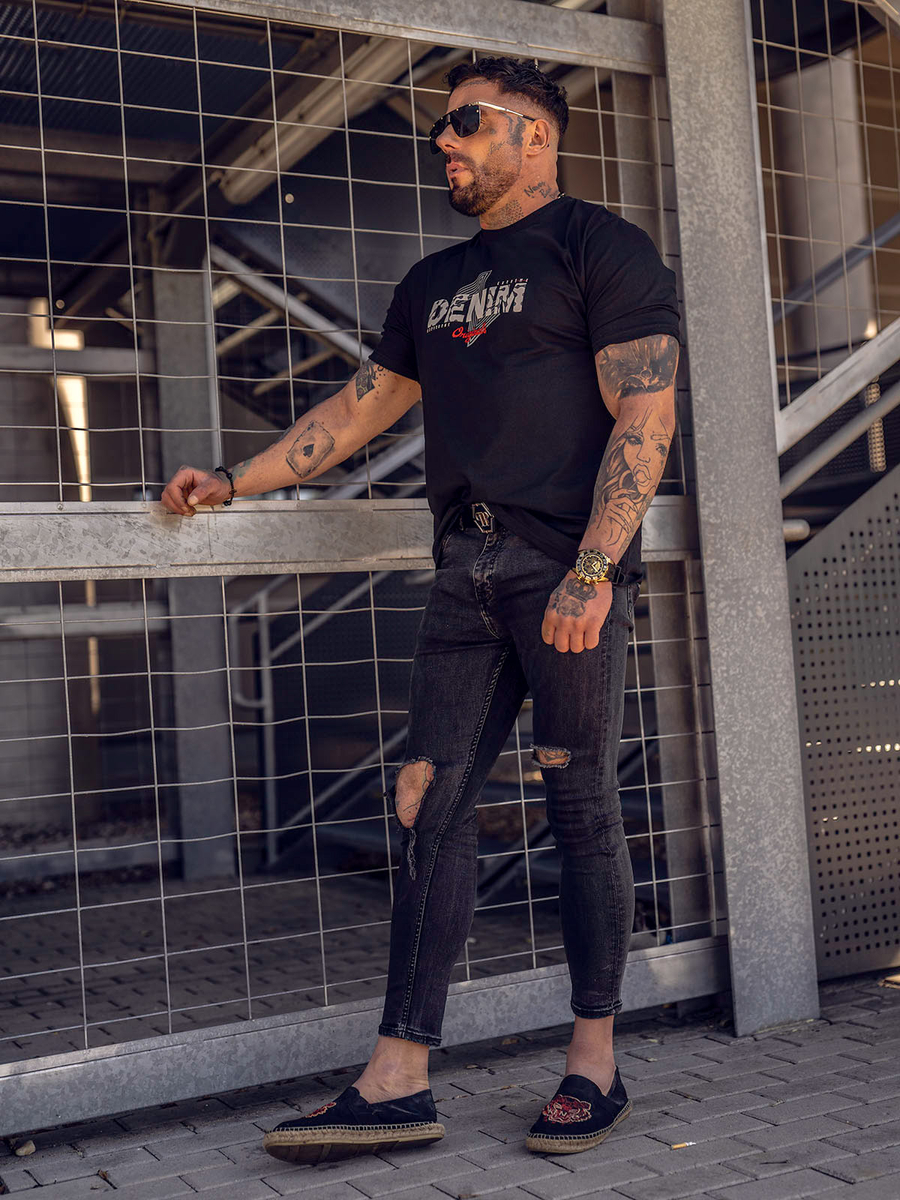 A felhasználók véleménye Fekete színű pamut férfi póló mintával Bolf 14791A