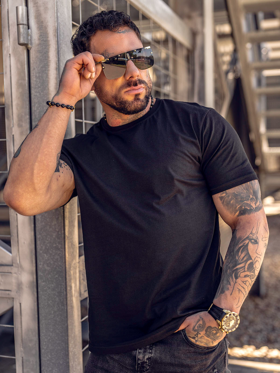 Férfi minta nélküli Bolf 192397 póló, klasszikus szabással. Ez a modell több tucat színváltozatban kapható, így mindenki megtalálja a számára megfelelőt. A színválaszték ilyen nagy változatosságának köszönhetően bármilyen összeállításhoz passzol. A teljesen egyenes szabású, kerek nyakkivágású póló minden alkatra tökéletesen illeszkedik. A póló rendkívül kényelmes és kellemes tapintású. Ez egy kiváló minőségű termék, 100%-ban pamutból készült. Ebben a modellben minden helyzetben nagyon kényelmesen fogod érezni magad: mindennapi viseletként és esti baráti programok során is. Ez egy olyan termék, amelyre minden férfi ruhatárában szükség van. Párosítsa rövidnadrággal, farmernadrággal. Nagyszerűen mutat párban jogger nadrággal és egy nyitott pulóver.