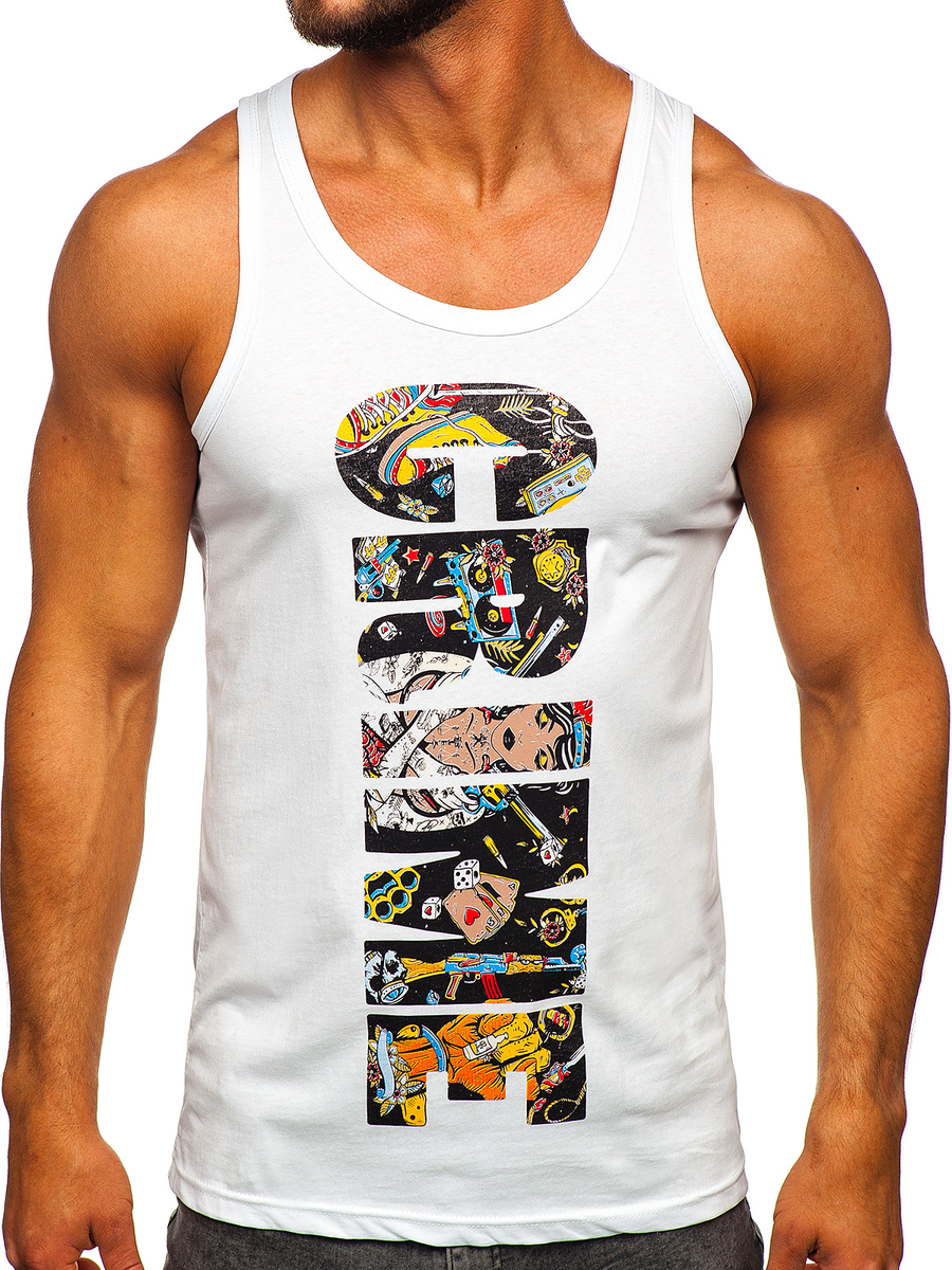 A felhasználók véleménye Mintás fehér színű boksz tank-top Bolf 143031