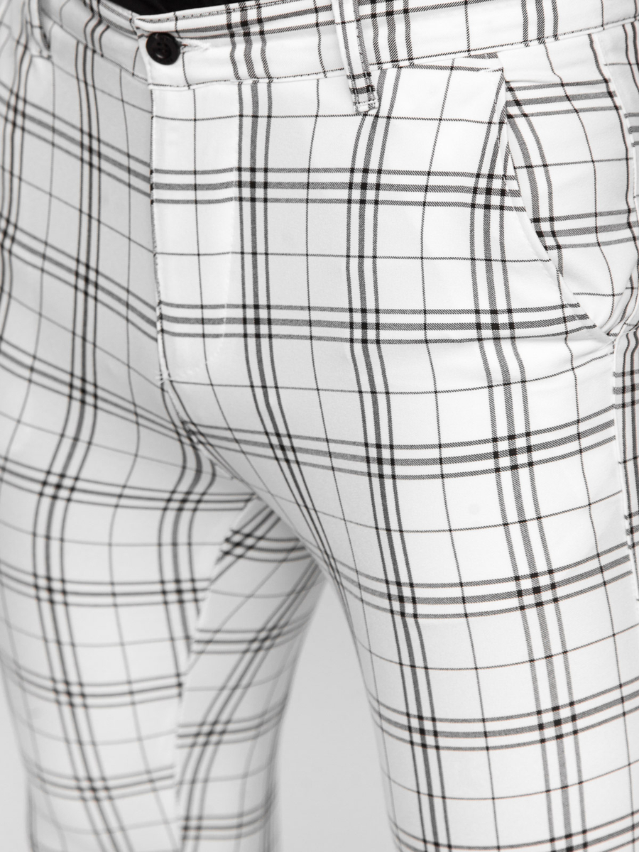 A felhasználók véleménye Fehér férfi kockás elegáns szövetnadrág Bolf 0054