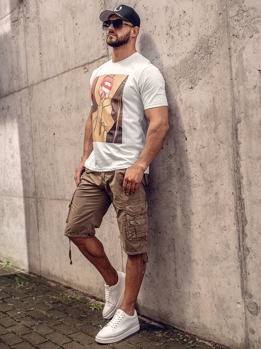 A felhasználók véleménye Férfi pamut póló mintával fehér színben Bolf 143018A