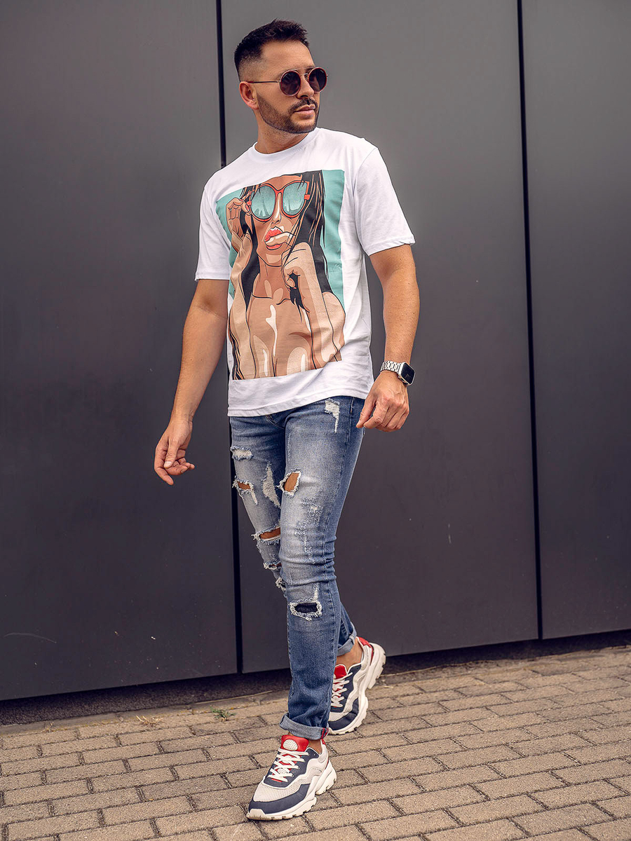 A felhasználók véleménye Férfi pamutpóló mintával fehér színben Bolf 143019A