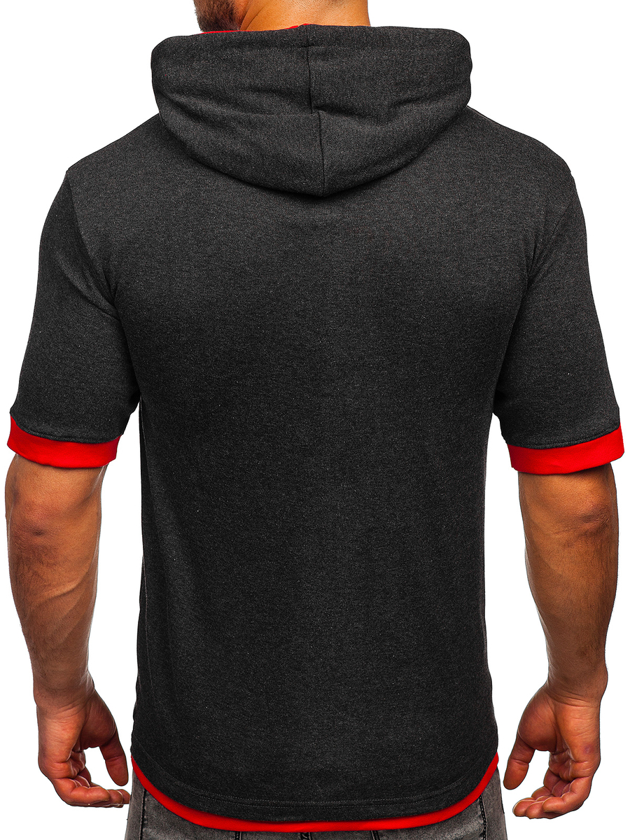 A felhasználók véleménye Antracit-piros színű kapucnis férfi póló minta nélkül Bolf 08-1