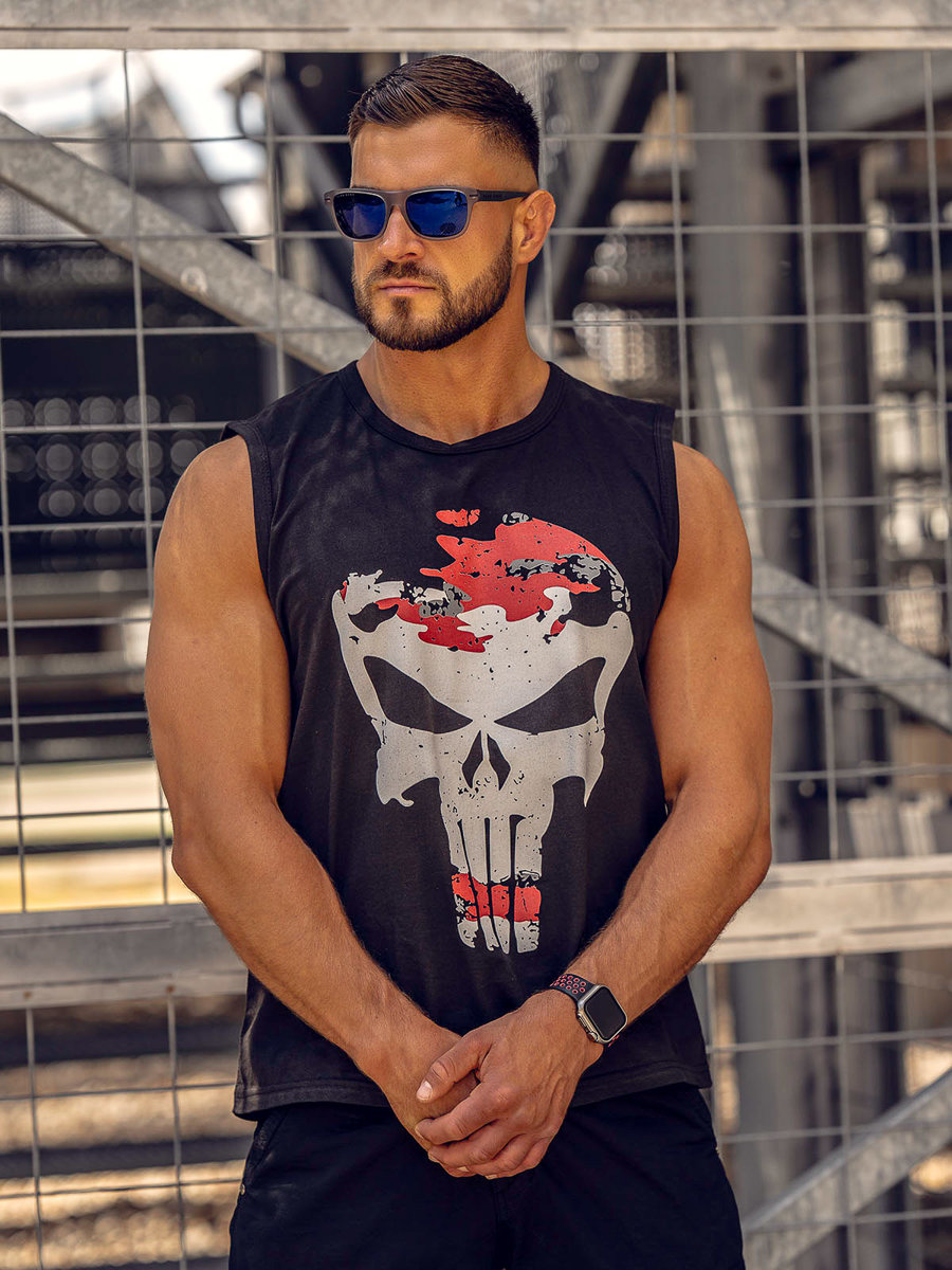 Fekete-piros színű, mintás tank-top -Bolf 14822A- nagyszerű választás azoknak, akik értékelik az egyedi stílust és a kényelmet. Könnyű, lélegző az anyaga, kényelmet és szabad mozgást biztosít viselés közben. Tökéletes nyári sétára, edzésekre, jogginghez vagy más sporttevékenység során is megállja a helyét. A nyomat egyedivé teszi és divatos kinézetet biztosít. Nagyszerűen mutat joggerrel, shorttal, vagy sport nadrággal.