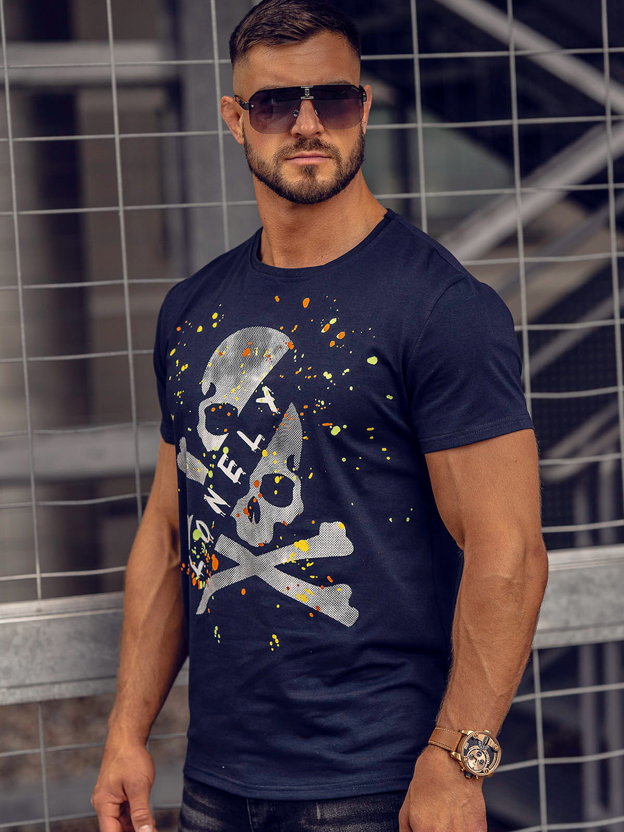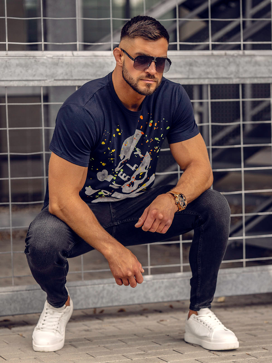 Férfi póló gránátkék színben , Bolf Y70008A, kerek dekoltázzsal. Pamutból és poliészterből készült, ennek köszönhetően rugalmas az anyaga és kellemes a tapintása. Megfelelő városi kiruccanásra, találkozásra az ismerősökkel vagy sétára. A klasszikus színű póló majdnem minden stílushoz passzol. Termék, különleges, dizájnos nyomattal elől. Tökéletes párosítást alkot farmerral, joggerrel vagy melegítőnadrággal. A pólót viselheted pulcsi vagy mellény alatt.
