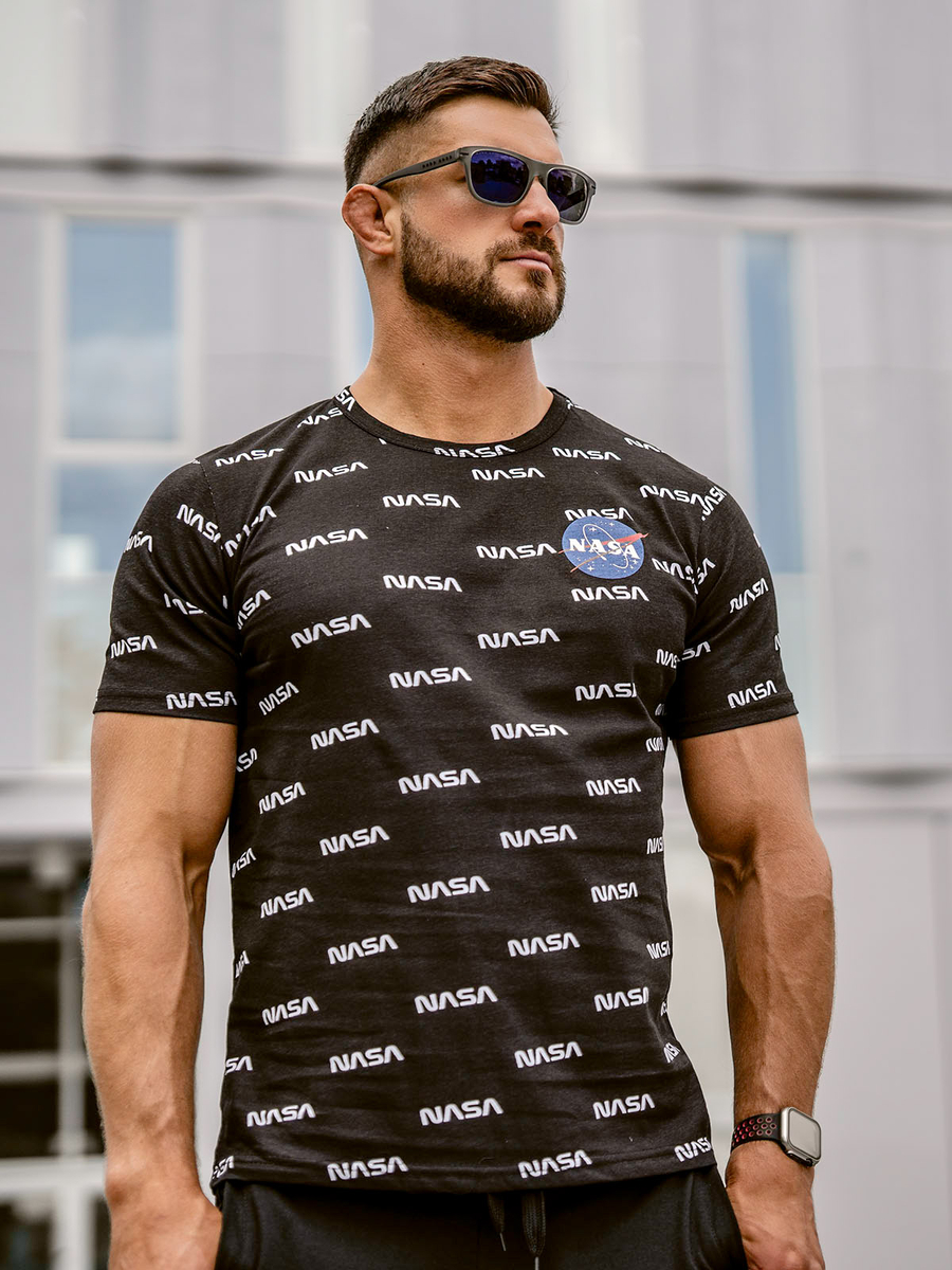 Fekete színű, mintás férfi póló - Bolf 14950A, egy must have ajánlat évszaktól függetlenül. A dizájnos nyomatnak köszönhetően kitűnhetsz a tömegből. Univerzális, kerek dekoltázzsal rendelkezik. A legmagasabb minőségű anyagból készült (100% pamut), kényelmet biztosít minden helyzetben,. Nagyszerűen mutat hétköznapi stilizációkban vagy edzés közben. A széles színválasztéknak köszönhetően számos divatos stilizációt alakíthatsz ki vele. Párosítsd farmerral, joggerrel vagy melegítőnadrággal, nagyszerűen mutat minden stilizációban.