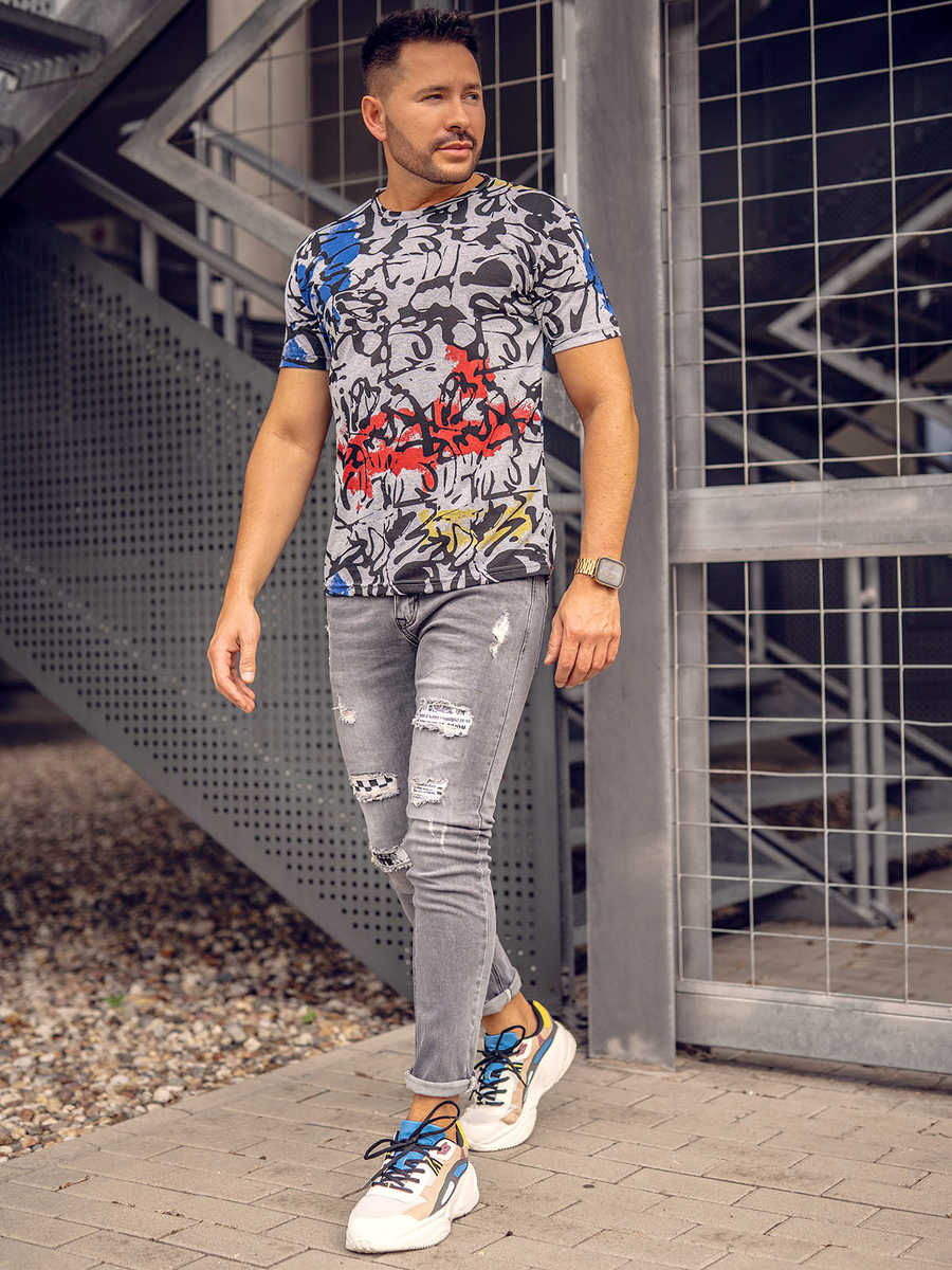 A felhasználók véleménye Mintás férfi póló szürke színben Bolf 14901A