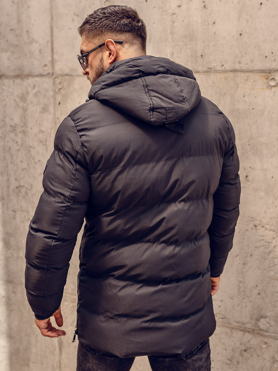Fekete, steppelt, téli férfi parka dzseki -Bolf 7330A- melegen tart a hidegebb napokon is. Négy kifinomult színben kapható. Parka típusú kabát, cipzározható és patentos. Kétrétegű, zsinórral állítható kapucnival, álló típusú gallérral. Két külső patentos zsebbel és egy belső gombolható zsebbel. A kabát ujjai belülről passzésak, ennek köszönhetően a kabát jól idomul az alakhoz. Az anyag rendkívül kellemes tapintású, ami kényelmet biztosít viselés közben. A dekoratív hátsó zárak és a hosszított hátsó rész különlegessé teszik. A hétköznapokon viseld hosszú ujjú felsővel és farmerral.