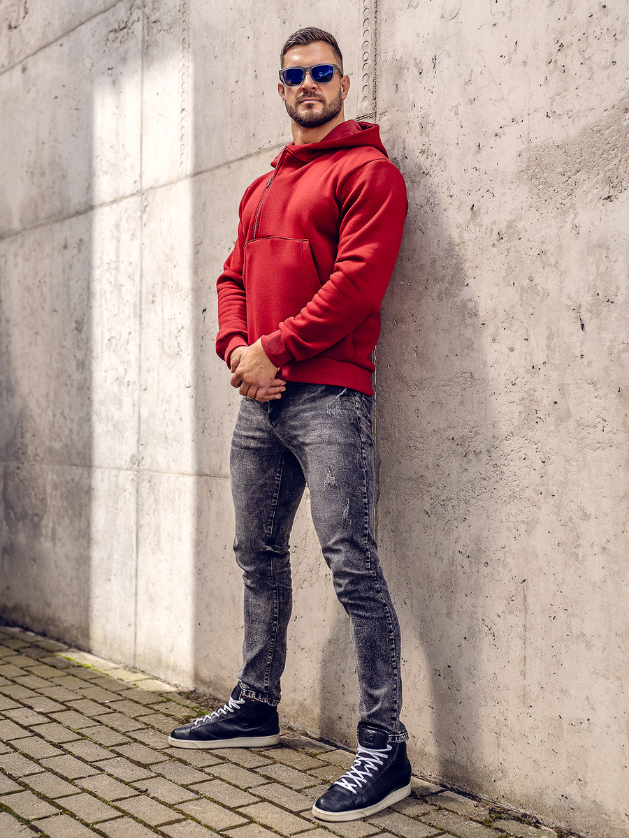Bordó színű, férfi melegítőfelső kapucnival, Bolf 02A, egy jó ajánlat a hűvösebb napokra. Kapucnival és időtálló kenguru típusú zsebbel rendelkezik. Kellemes tapintású anyagból készült. 70% pamutból és 30% poliészterből készült. Néhány érdekes színben kapható, ennek köszönhetően passzol különféle stilizációhoz . A pulcsi alsó része és az ujjai széles passzéval vannak ellátva, ennek köszönhetően melegen tart a hűvösebb napokon. Annyira tetszeni fog, hogy az év bármely szakában veled lesz. Megfelelő sétára vagy a városon kívüli kiruccanásra ismerősökkel. A melegítőnadrágunkkal kiegészítve ez a pulcsi tökéletes párost alkot az aktívan élőknek. A pulcsi a hétköznapokon is nagyszerűen párosítható farmerral és bőrdzsekivel.