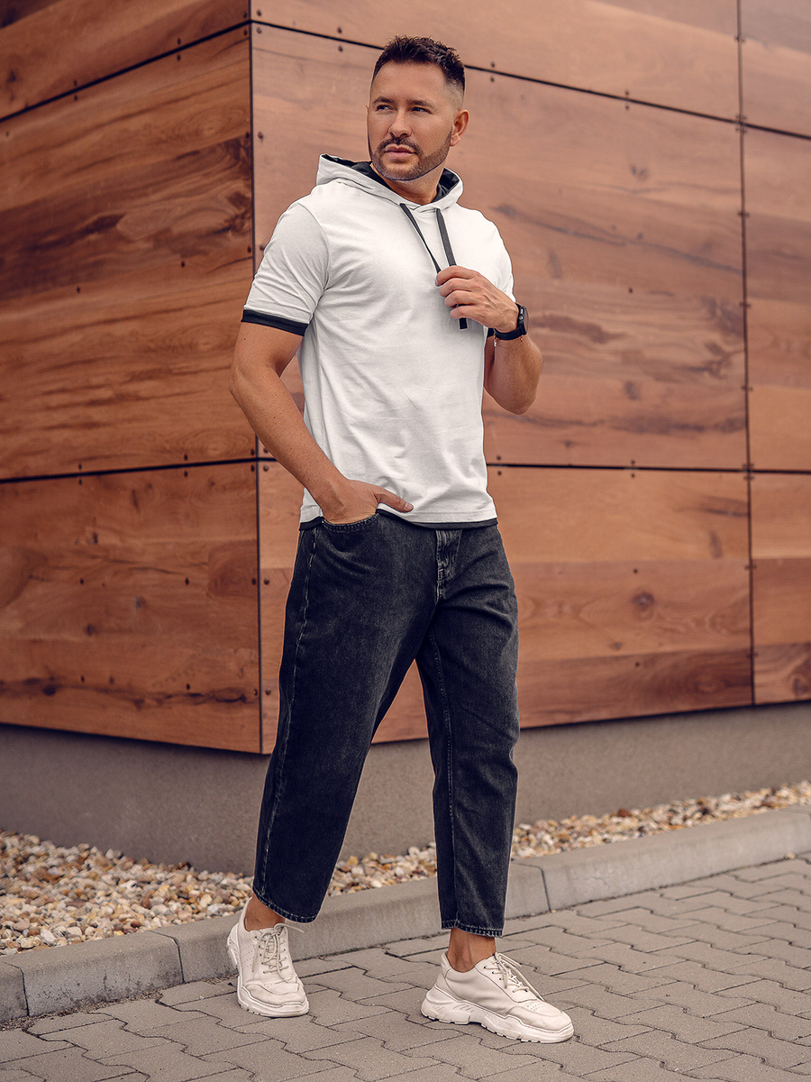 A felhasználók véleménye Férfi póló kapucnival minta nélkül fehér színben Bolf 08A