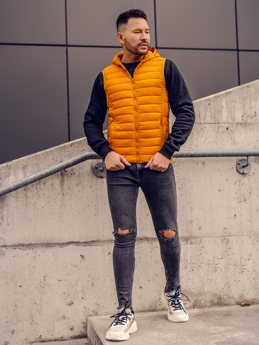 Camel színű, steppelt férfi mellény kapucnival, Bolf LY36A, egy must have minden férfi szekrényében a hűvösebb napokra. Öt színben kapható, így lehetőséged nyílik álmaid stílusának megalkotására. Cipzározható steppelt mellény. Állógallér kapucnival tökéletesen véd a szél és a hideg elől. Két praktikus, cipzározható zsebbel rendelkezik, a pénztárca, telefon vagy a dokumentumok biztonságos tárolására is alkalmas. A mellény alján, a kapucnin és a karok körül rugalmas ferdepánttal ellátva, nagyszerűen alakra szabott. Többek között azoknak ajánljuk, akik a szabadban aktívan szeretnék eltölteni az időt. Nagyszerű viselet jogginghoz vagy sétához. Hosszú ujjú felsővel és farmerral párosítva casual stilizációt biztosít a városi kiruccanásra vagy baráti találkozásra. Nagyszerűen mutat párban pulcsival és katonai nadrággal.
