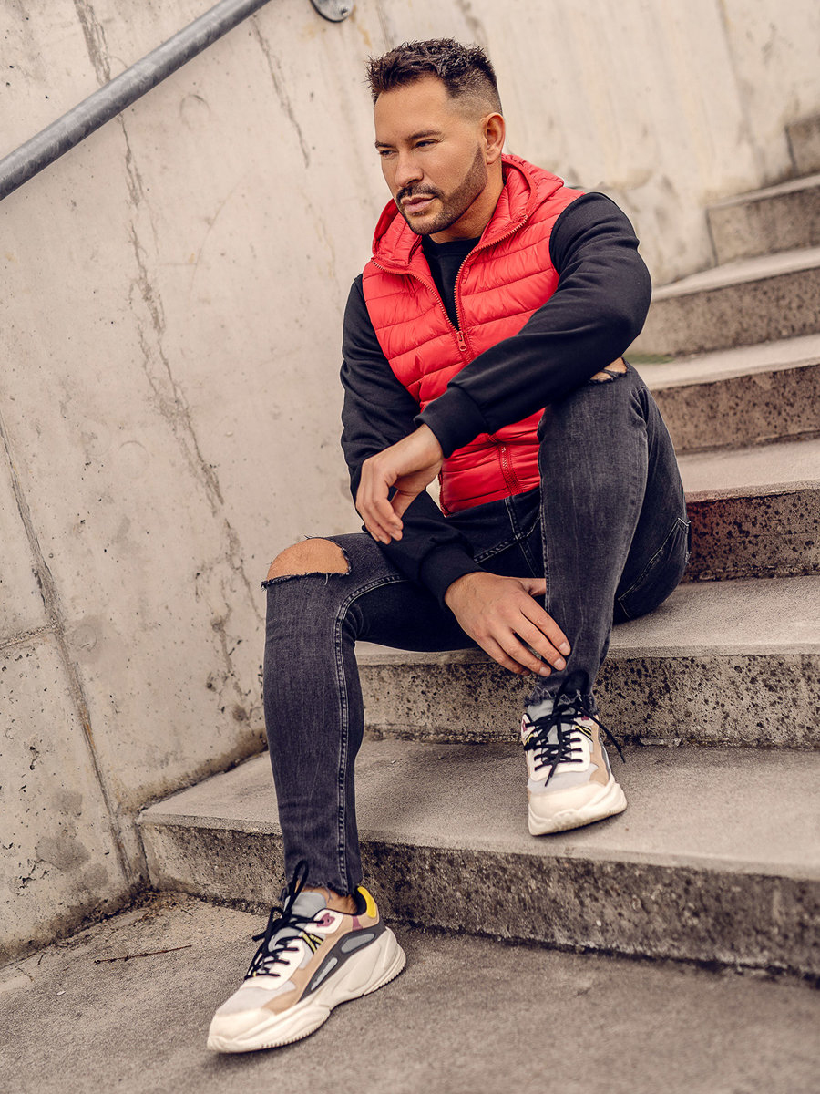 Piros színű, steppelt férfi mellény kapucnival, Bolf LY36A, egy must have minden férfi szekrényében a hűvösebb napokra. Öt színben kapható, így lehetőséged nyílik álmaid stílusának megalkotására. Cipzározható steppelt mellény. Állógallér kapucnival tökéletesen véd a szél és a hideg elől. Két praktikus, cipzározható zsebbel rendelkezik, a pénztárca, telefon vagy a dokumentumok biztonságos tárolására is alkalmas. A mellény alján, a kapucnin és a karok körül rugalmas ferdepánttal ellátva, nagyszerűen alakra szabott. Többek között azoknak ajánljuk, akik a szabadban aktívan szeretnék eltölteni az időt. Nagyszerű viselet jogginghoz vagy sétához. Hosszú ujjú felsővel és farmerral párosítva casual stilizációt biztosít a városi kiruccanásra vagy baráti találkozásra. Nagyszerűen mutat párban pulcsival és katonai nadrággal.