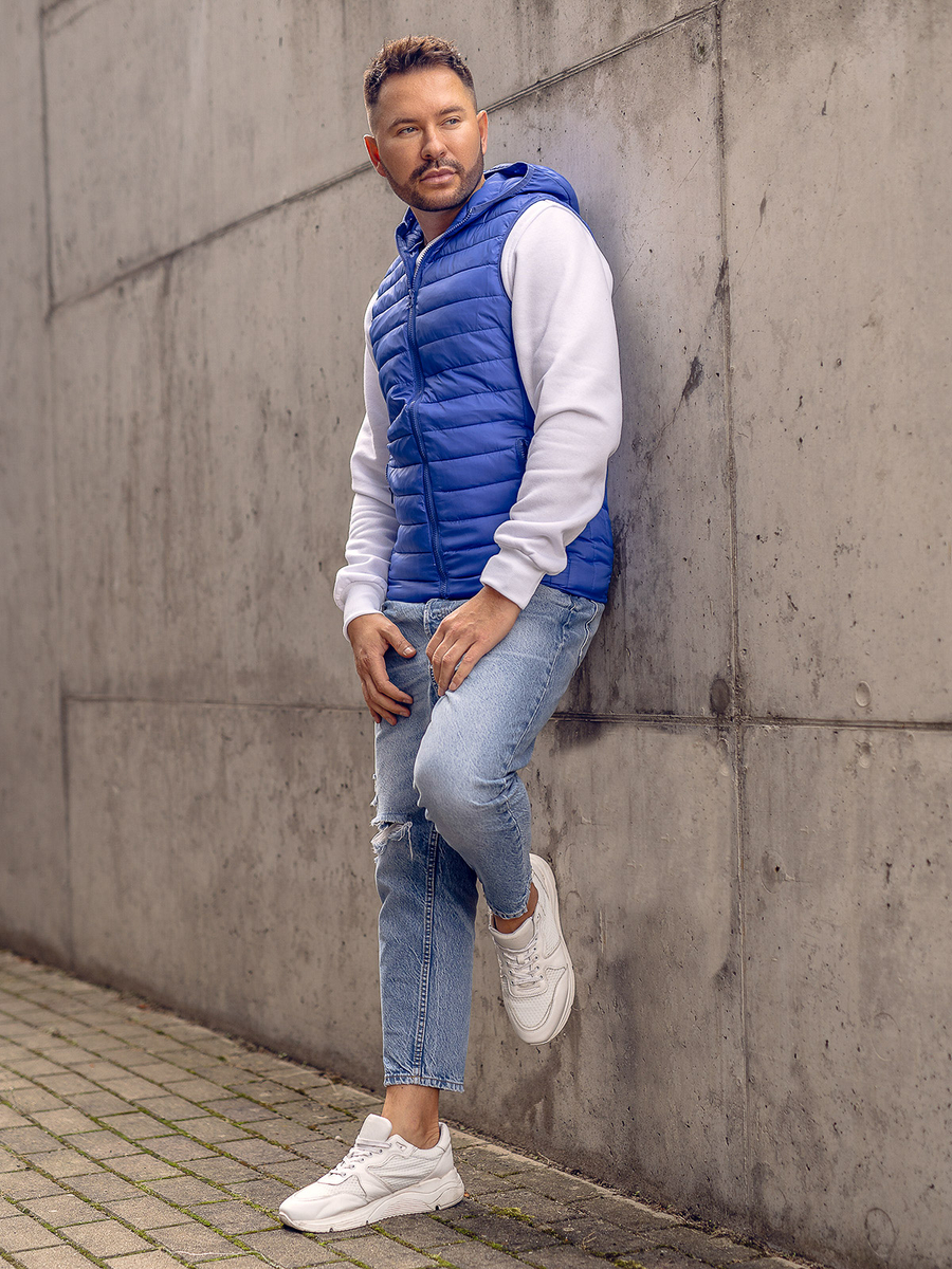 Kobaltkék színű, steppelt férfi mellény kapucnival, Bolf LY36A, egy must have minden férfi szekrényében a hűvösebb napokra. Öt színben kapható, így lehetőséged nyílik álmaid stílusának megalkotására. Cipzározható steppelt mellény. Állógallér kapucnival tökéletesen véd a szél és a hideg elől. Két praktikus, cipzározható zsebbel rendelkezik, a pénztárca, telefon vagy a dokumentumok biztonságos tárolására is alkalmas. A mellény alján, a kapucnin és a karok körül rugalmas ferdepánttal ellátva, nagyszerűen alakra szabott. Többek között azoknak ajánljuk, akik a szabadban aktívan szeretnék eltölteni az időt. Nagyszerű viselet jogginghoz vagy sétához. Hosszú ujjú felsővel és farmerral párosítva casual stilizációt biztosít a városi kiruccanásra vagy baráti találkozásra. Nagyszerűen mutat párban pulcsival és katonai nadrággal.