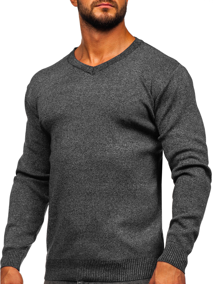 A felhasználók véleménye V-nyakú basic férfi pulóver antracitszürke színben Bolf S8530