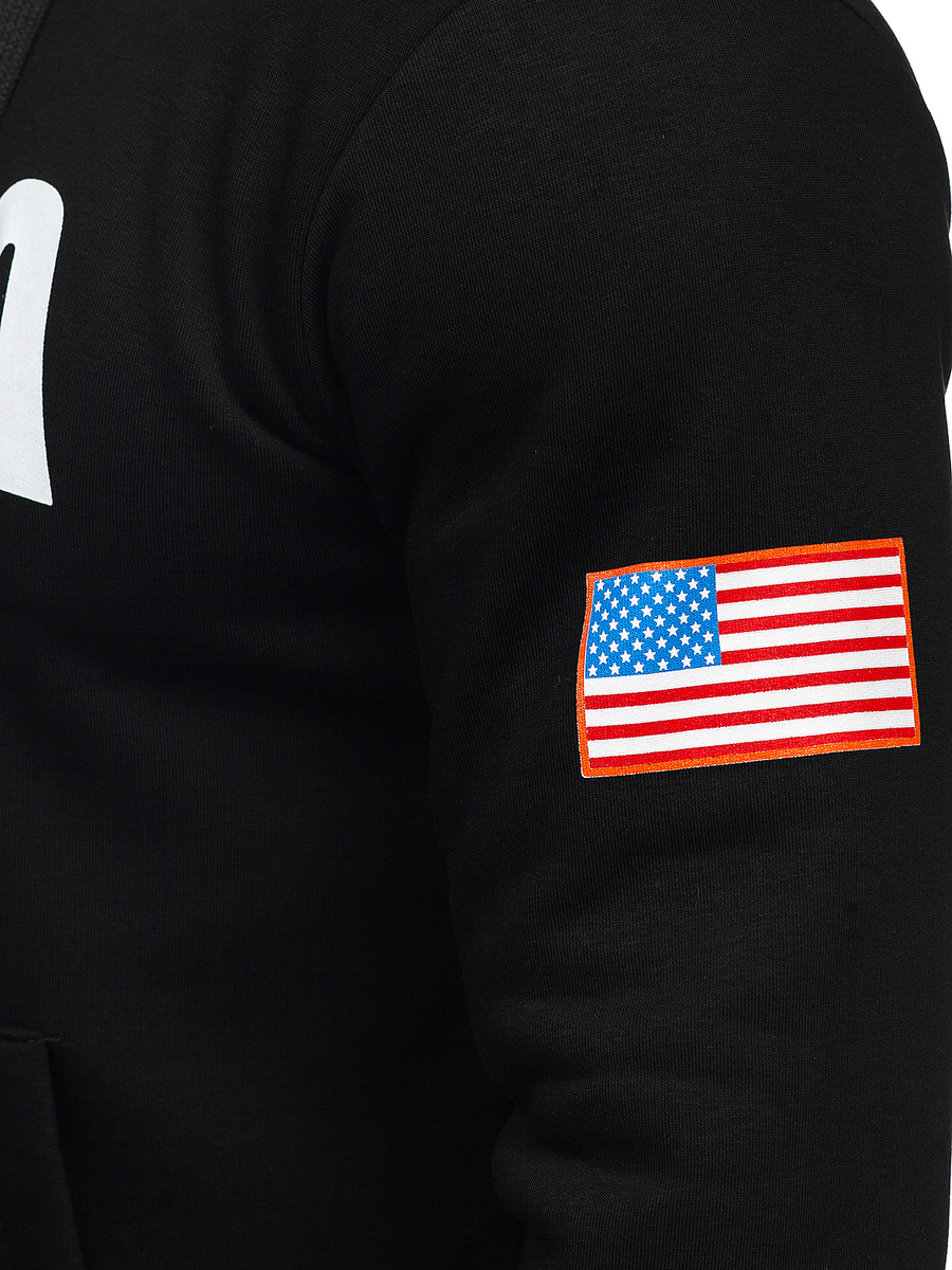 Mintás, férfi melegítőfelső kapucnival fekete színben -BOLF 146956- nagyszerű választás azoknak a férfiaknak, akik értékelik a stílust, a kényelmet és az eredetiséget. A sportos esztétika és a modern stílus párosítása, ideálisan mutat különféle alkalmak során. Puha, tartós az anyaga, kényelmet és szabad mozgást biztosít viselés közben. Kapucnival rendelkezik, amely tökéletesen véd a szél és a hideg elől, a mutatós nyomat egyéniséget kölcsönöz a melegítőfelsőnek és különleges kinézetet biztosít. A termék univerzális színe megkönnyíti a kombinálhatóságát más ruhadarabokkal. A hétköznapi, casual és a sportos stilizációkban is megállja a helyét. Viseld farmerral vagy katonai nadrággal.