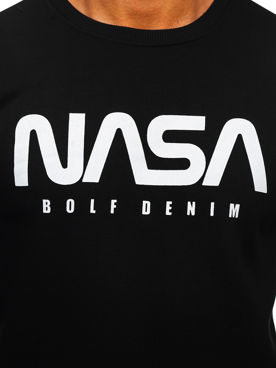 Mintás, kapucni nélküli, fekete színű, férfi melegítőfelső -Bolf 14815- nagyszerű ajánlat azoknak a férfiaknak, akik értékelik a divatos kinézetet és a szabad mozgást. Magas minőségű anyagból készült, ennek köszönhetően puhaságot és tartósságot biztosít. A fekete szín univerzálissá teszi a melegítőfelsőt, ennek köszönhetően különféle ruhadarabokkal párosítható. Egyedi nyomat karakteressé és egyéniséggé teszi a stilizációt. Tökéletes a hidegebb napokra külső rétegként joggerrel.
