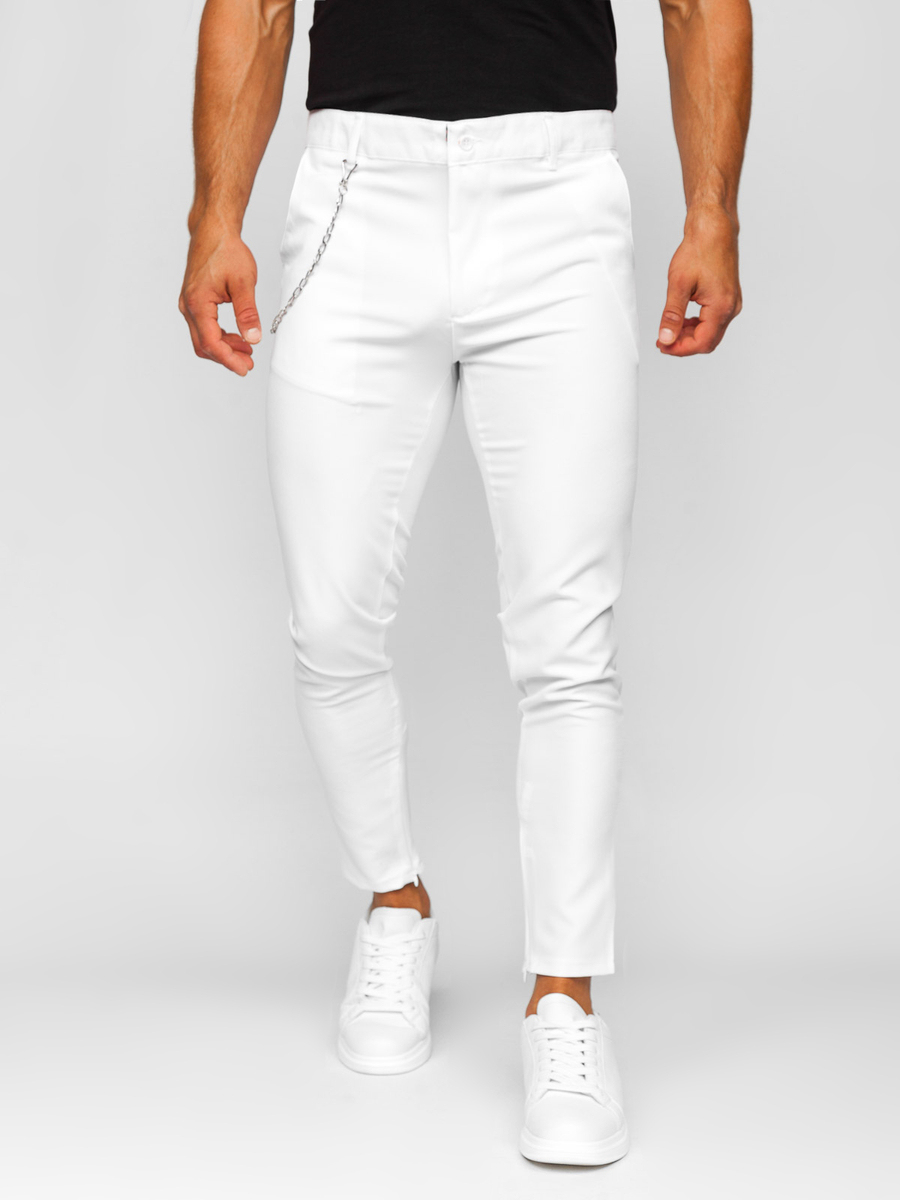 A felhasználók véleménye Fehér anyagból készült férfi chino nadrág Bolf 0059