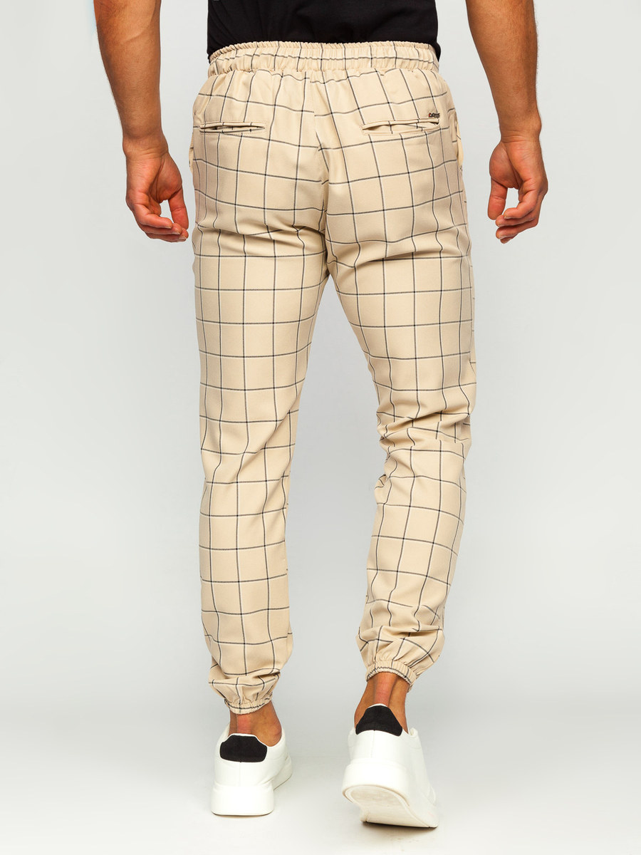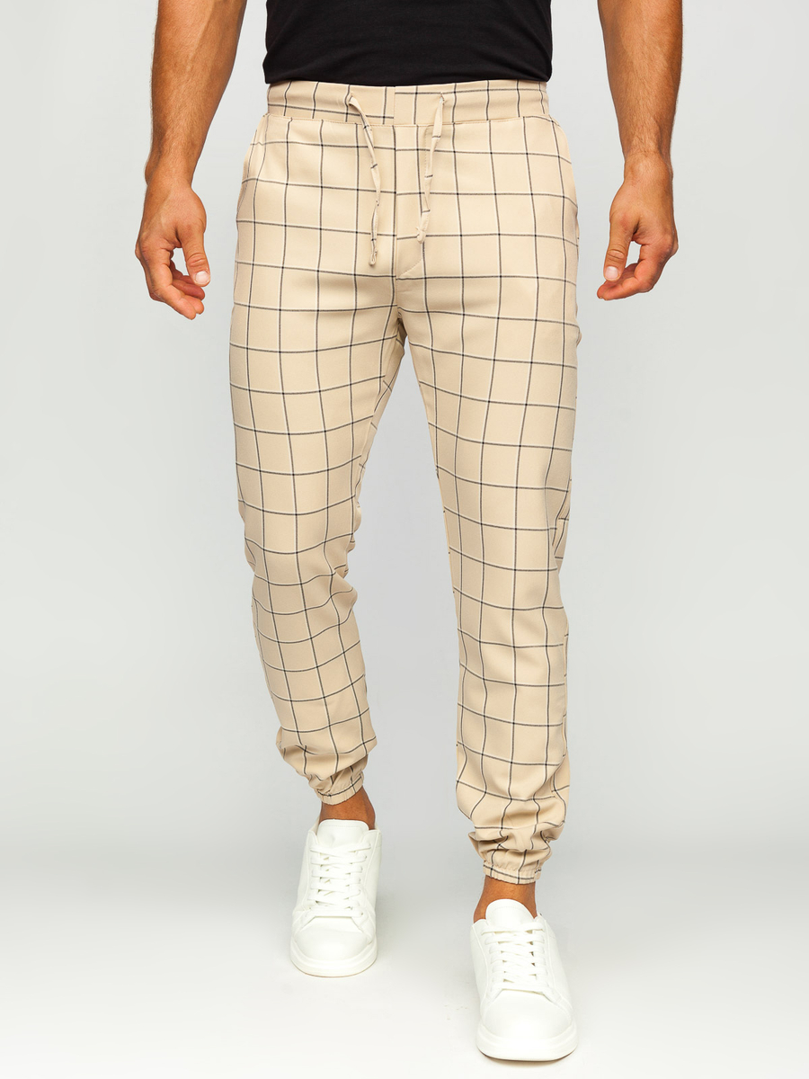 A felhasználók véleménye Kockás férfi jogger vászonnadrág bézs színben Bolf 0064