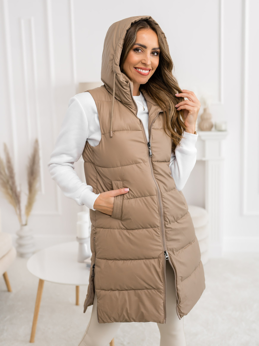 A felhasználók véleménye Bézs színű hosszú steppelt női mellény Bolf B8212