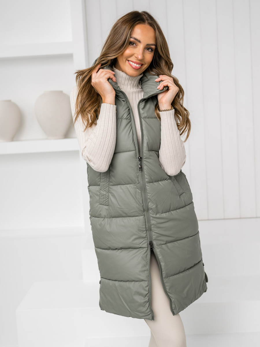 A felhasználók véleménye Zöld színű hosszú steppelt női mellény Bolf R8212