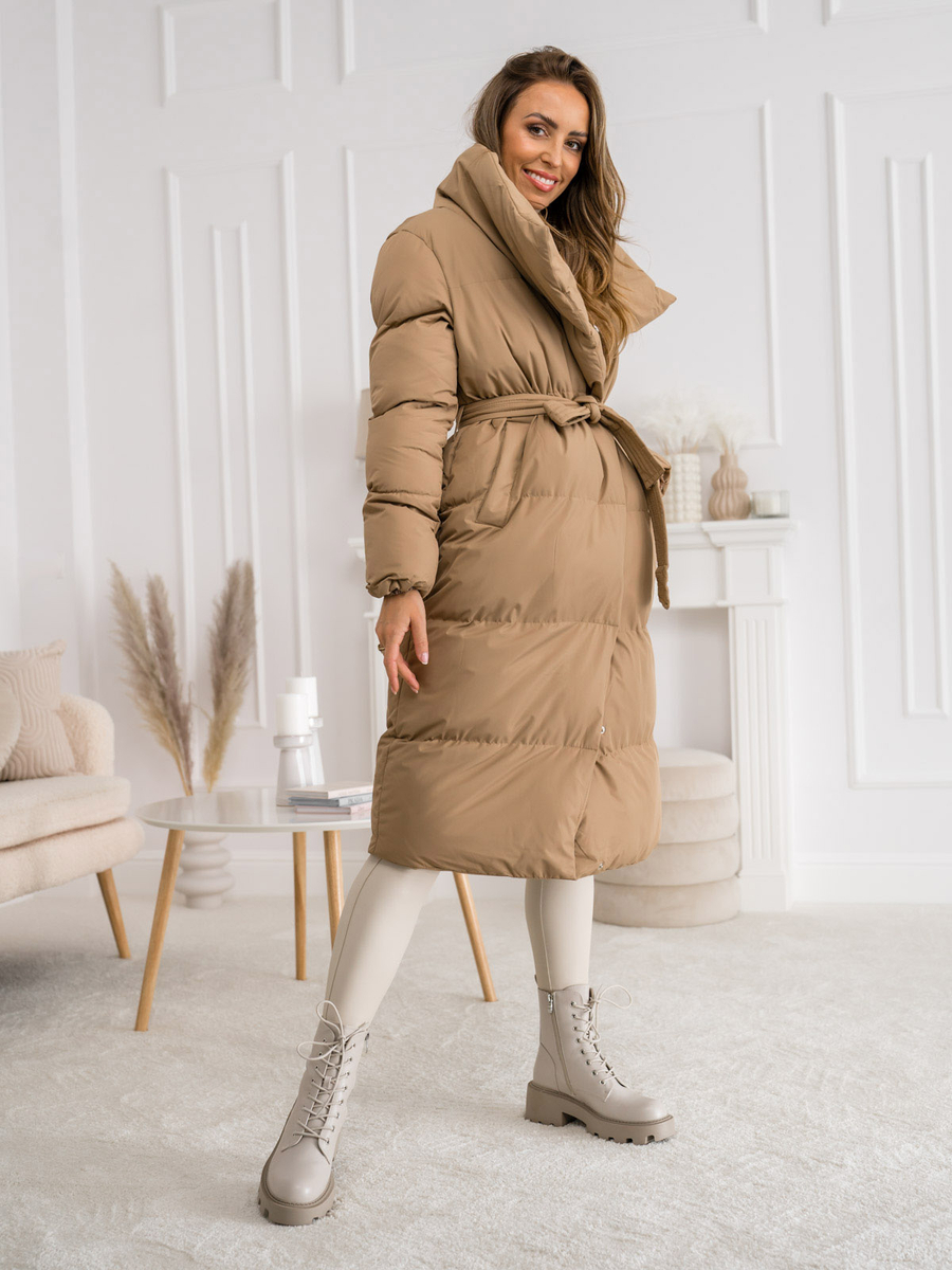 A felhasználók véleménye Camel színű hosszú steppelt téli női kabát Bolf 5M737