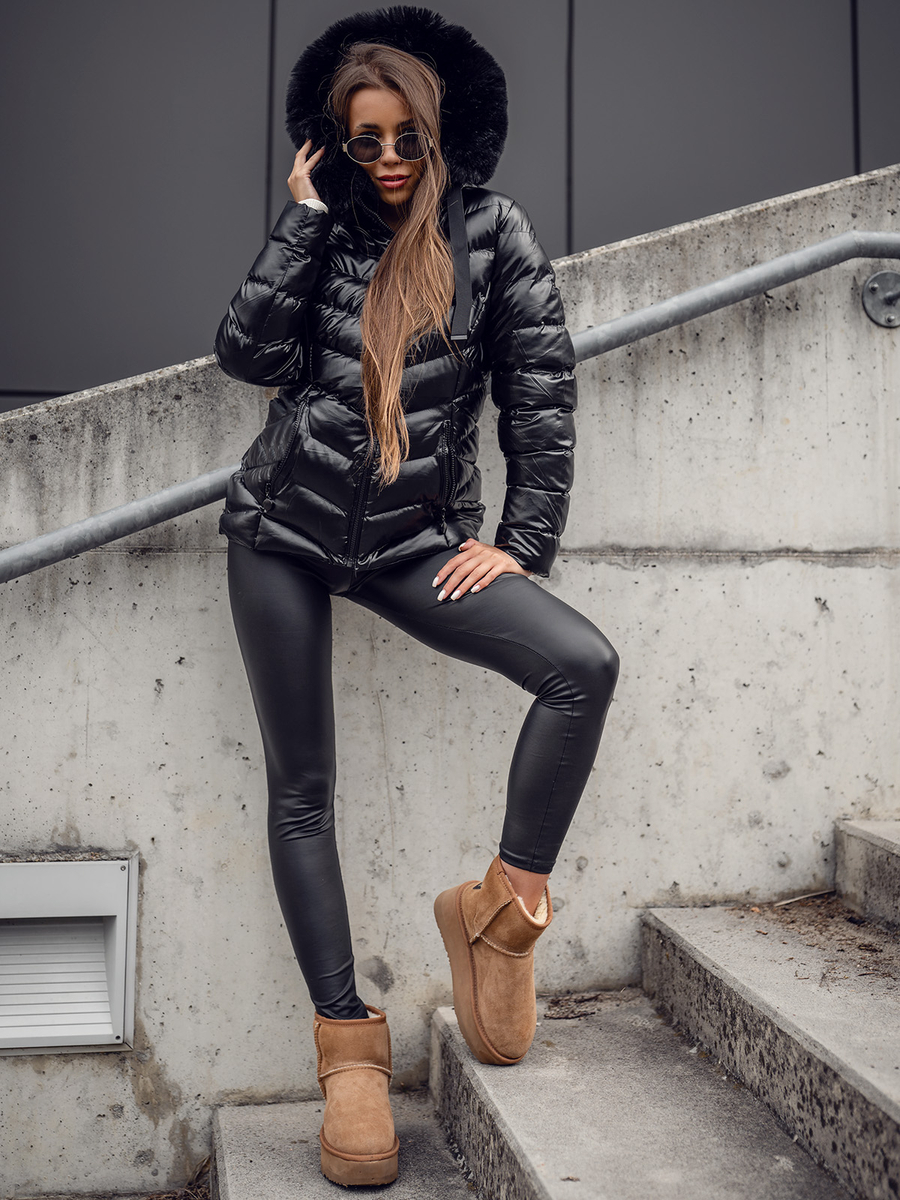 A felhasználók véleménye Fekete színű steppelt téli női kabát kapucnival Bolf 5M3138