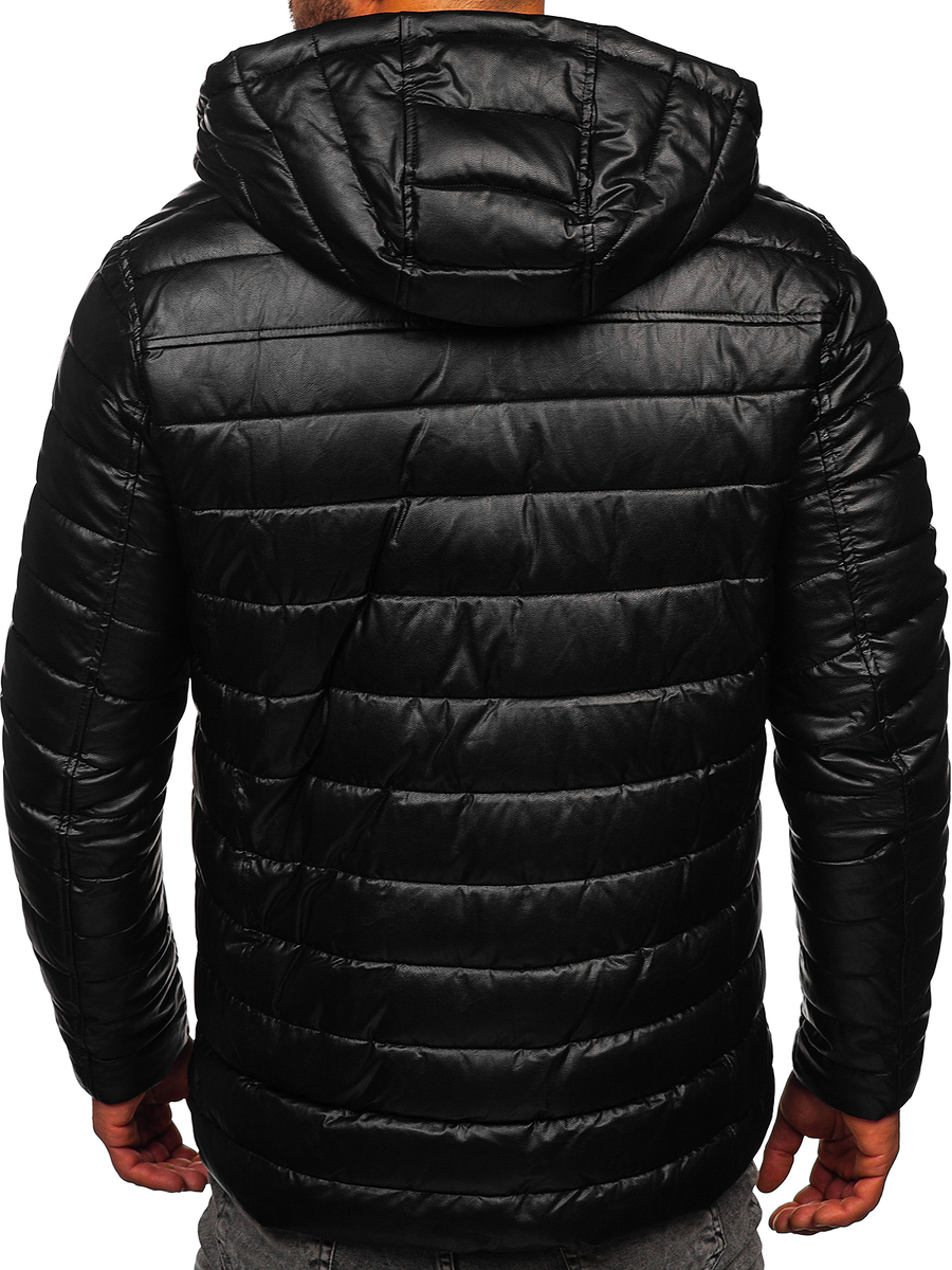A felhasználók véleménye Steppelt téli férfi bőrdzseki fekete színben Bolf 11Z8088