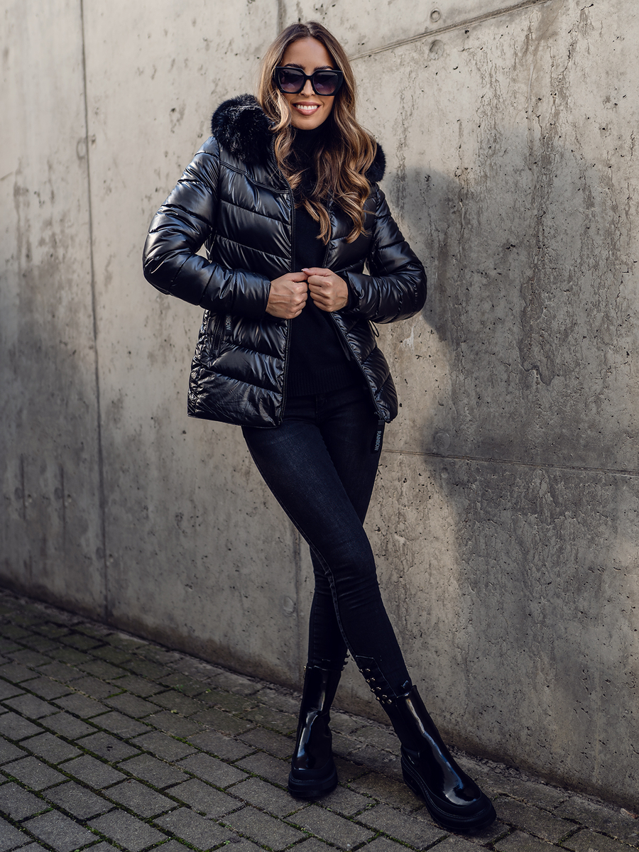 A felhasználók véleménye Steppelt téli női dzseki kapucnival fekete színben Bolf B8163A