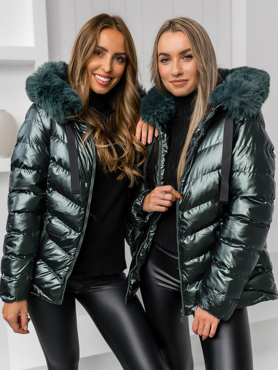 A felhasználók véleménye Zöld színű téli steppelt női dzseki kapucnival Bolf 5M3138A