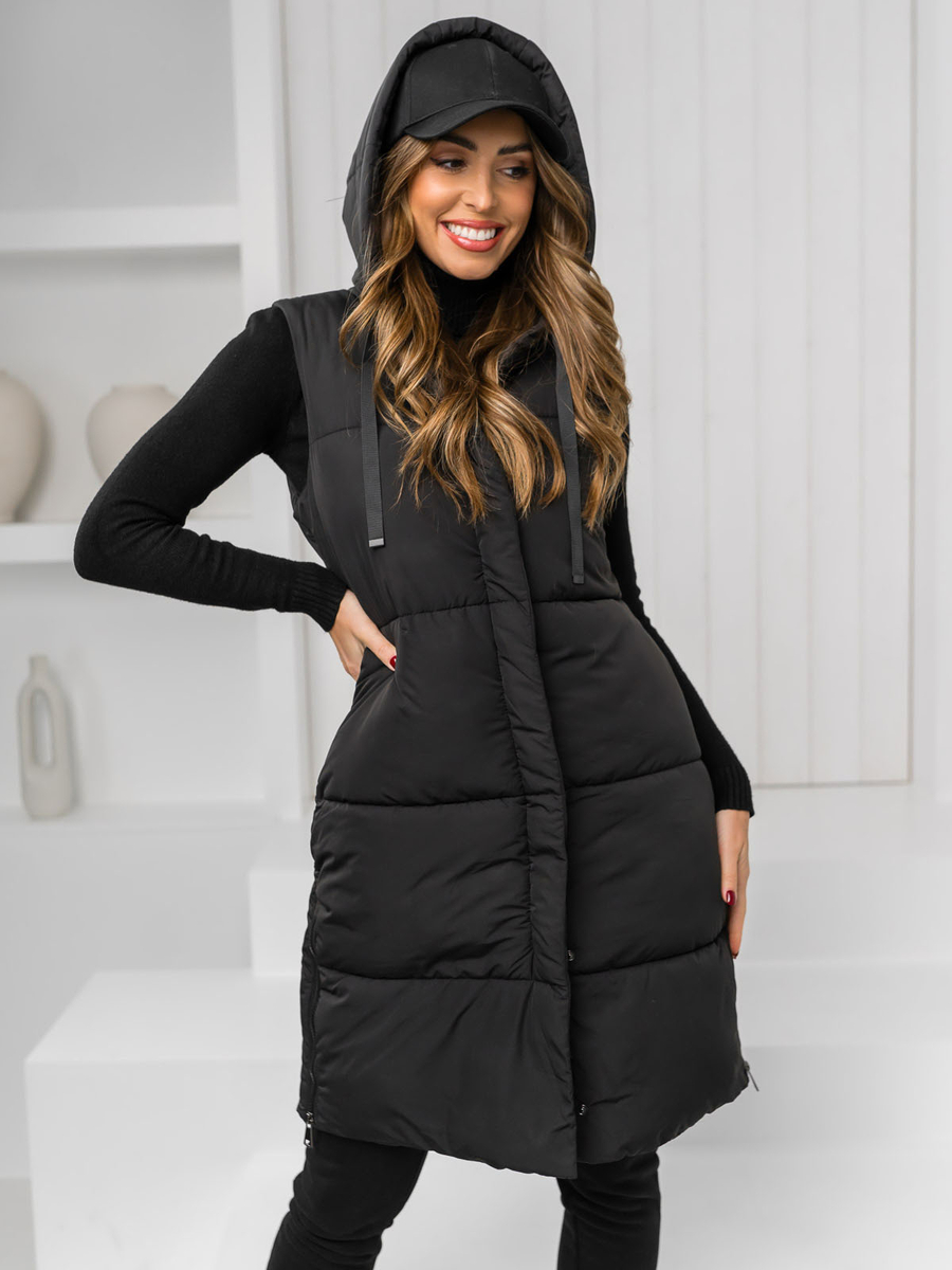 A felhasználók véleménye Fekete színű hosszú steppelt női mellény kapucnival Bolf 16M9093