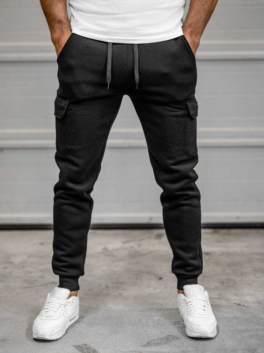 Fekete színű, katonai férfi melegítőnadrág -Bolf JX8709B- nagyszerű ajánlat azoknak a férfiaknak, akik értékelik a kényelmet. Nadrág kifinomult színben. Derékban erős szűkítővel és megkötővel állítható, nagyszerűen alakra szabott. Két praktikus oldalsó, zár nélküli zsebbel. Egy olyan tárhelyet biztosítanak, ahol a kulcsokat, a pénztárcát vagy a telefont is tarthatod. Más apró tárgyak az oldalsó zsebekben tárolhatók. Oldalsó zsebek a comboknál is találhatók, melyek stílusos nyomatokkal vannak díszítve. A szárak divatos passzéval vannak ellátva, ennek köszönhetően nagyszerűen passzol az alakhoz. Kényelmes és tökéletesen véd a hideg elől akár a leghidegebb napokon.