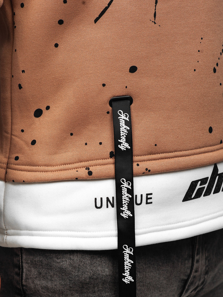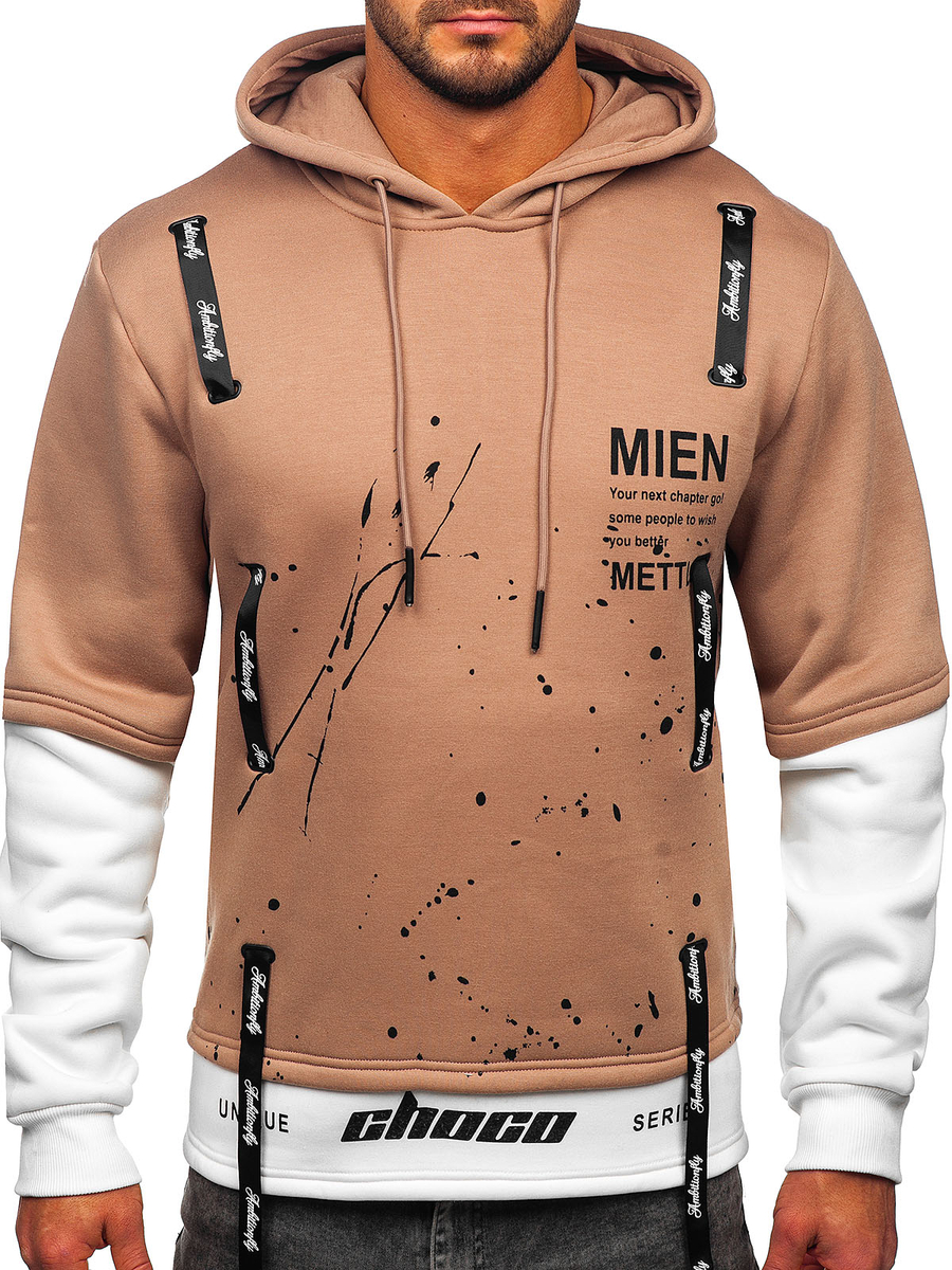 A felhasználók véleménye Bézs színű kapucnis férfi melegítőfelső mintával Bolf LJ0586A