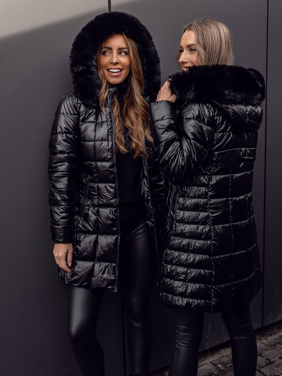 A felhasználók véleménye Fekete színű hosszú steppelt téli női kabát kapucnival Bolf 16M9120B