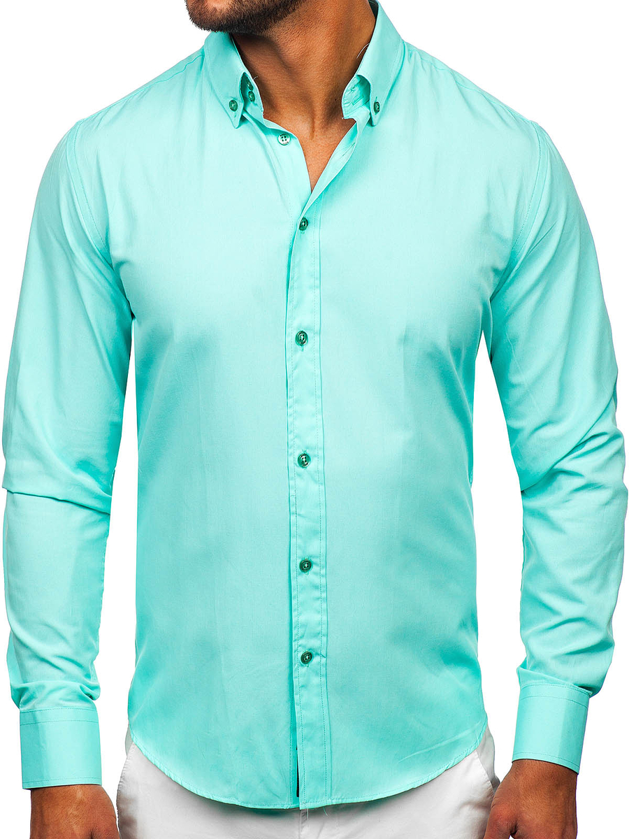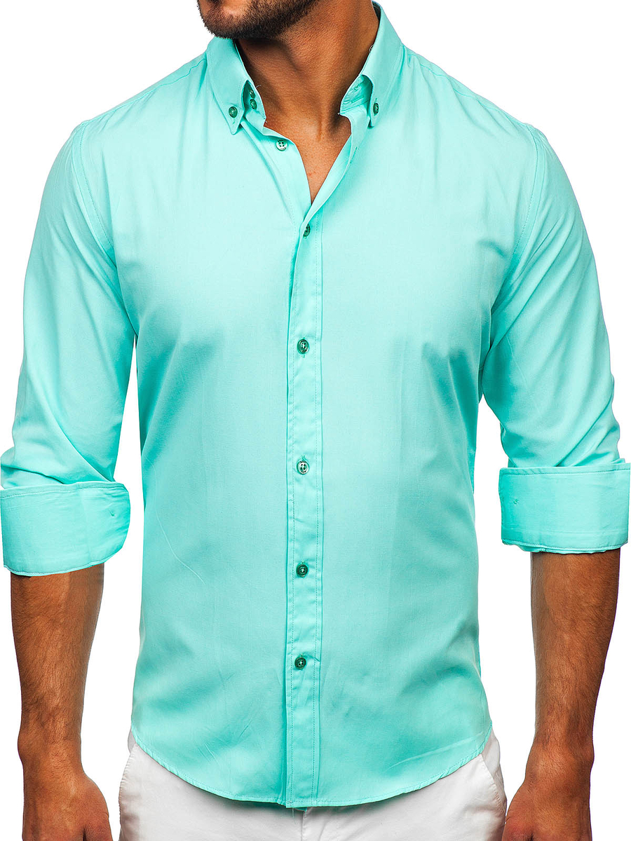 Világos türkiz, elegáns férfiing a Bolftól , mely nagyszerűen mutat minden stílusban - formális stilizációban és a hétköznapokon is. Fantasztikusan karcsúsítja az alakot, eleganciát biztosítanak az öltözékeknek. A zöld slim fit ing elegáns, de casual akcentussal is rendelkezik, mint például a button down gallér.