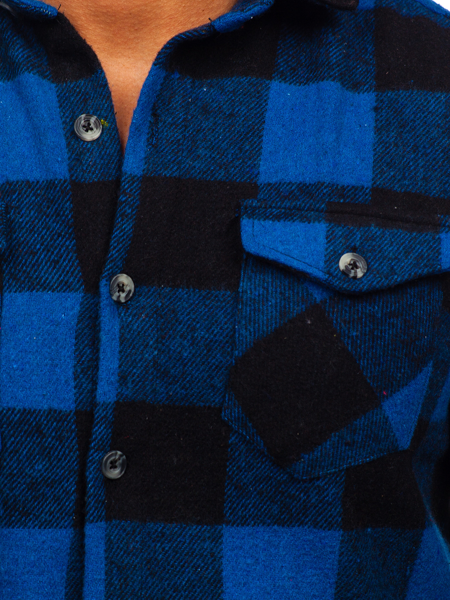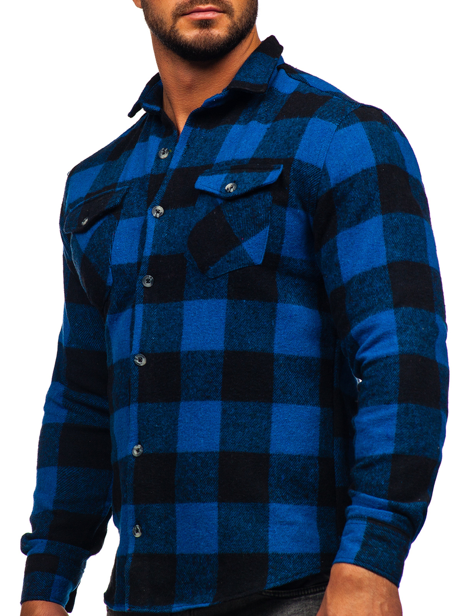 A felhasználók véleménye Hosszú ujjú férfi flaneling gránátkék színben Bolf 20723
