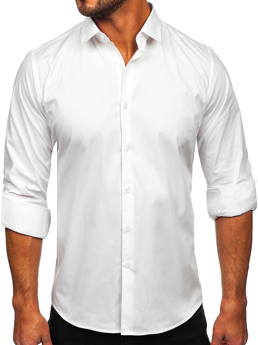 A felhasználók véleménye Elegáns hosszú ujjú slim fit pamut férfiing fehér színben Bolf TSM13