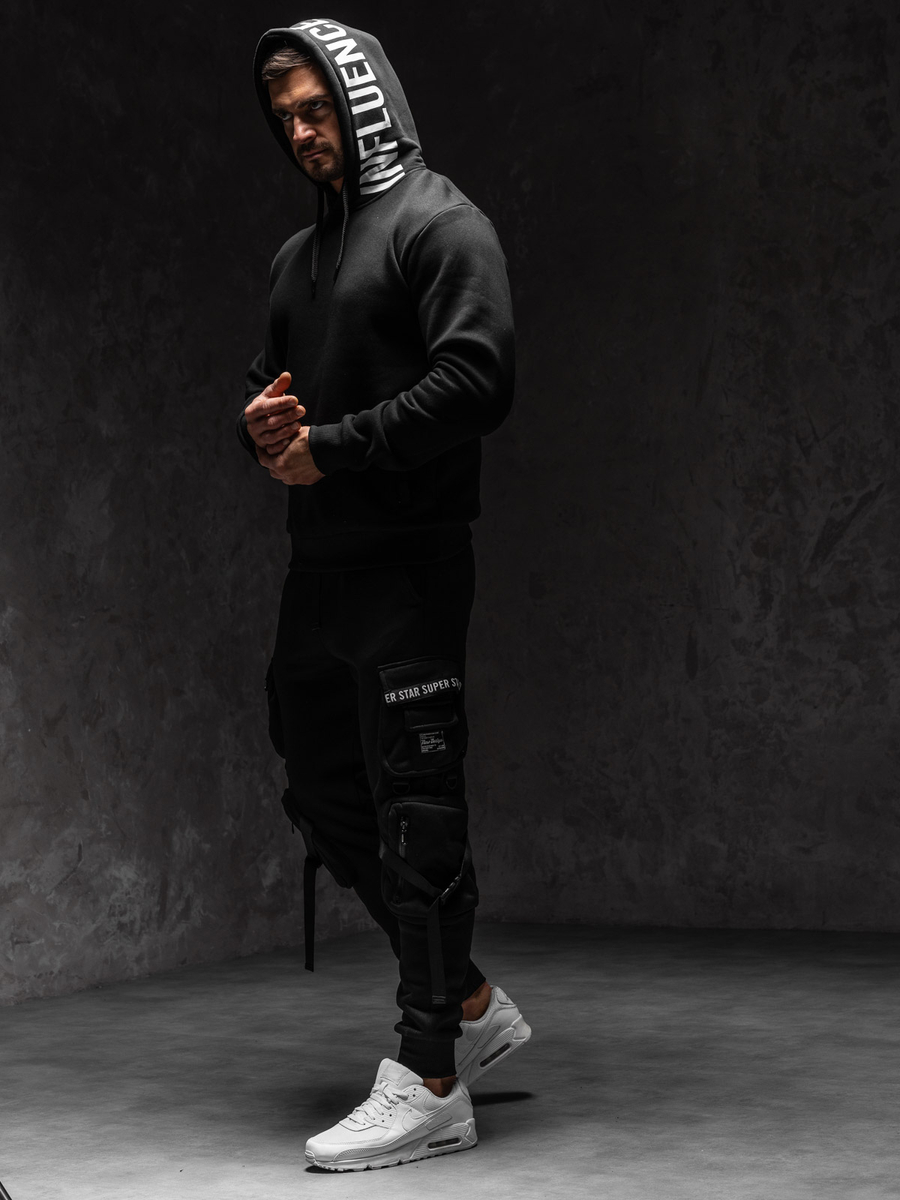A felhasználók véleménye Fekete színű kapucnis férfi melegítőfelső mintával Bolf 147050A