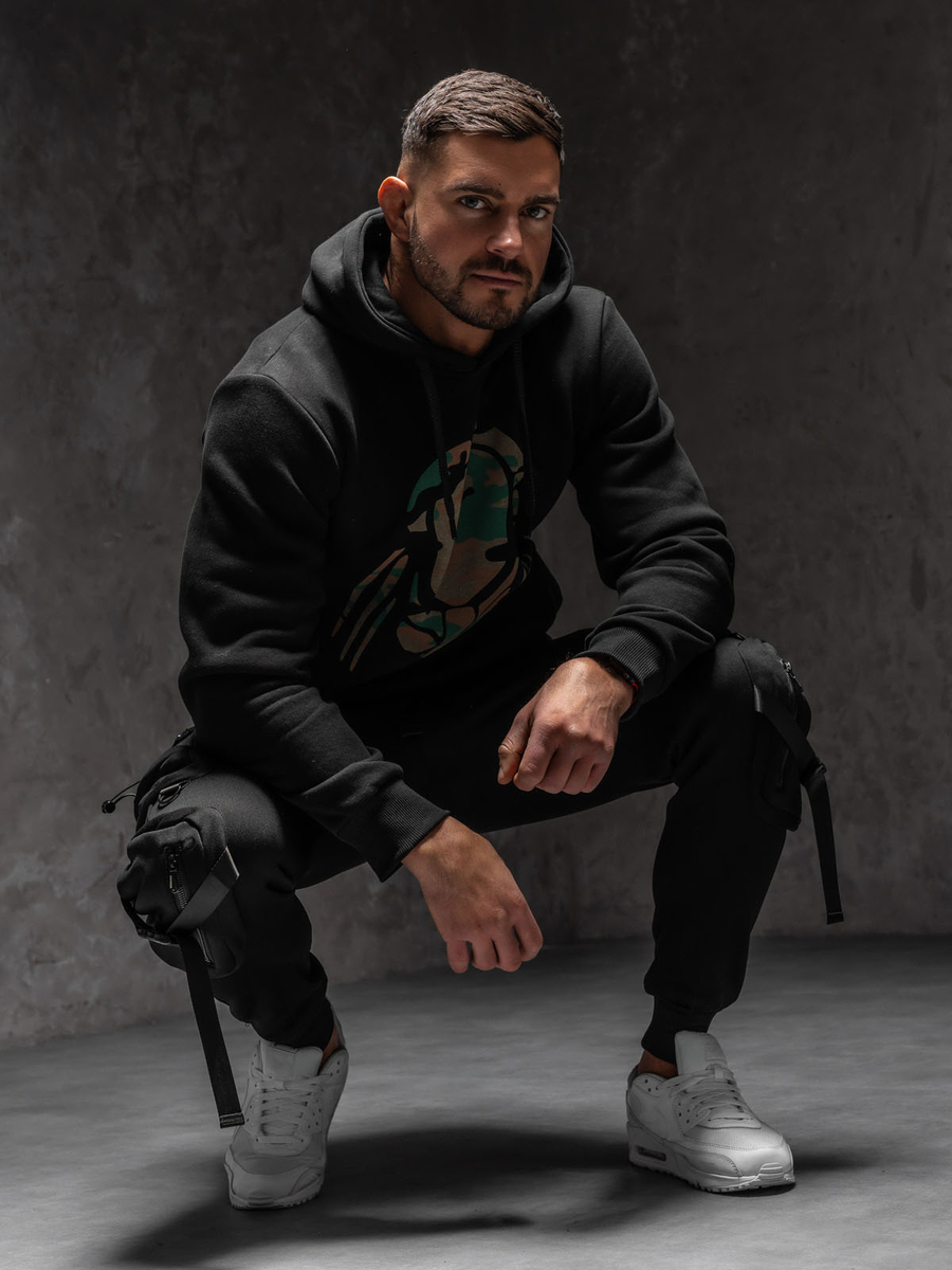 A felhasználók véleménye Fekete színű kapucnis férfi melegítőfelső mintával Bolf 147048A