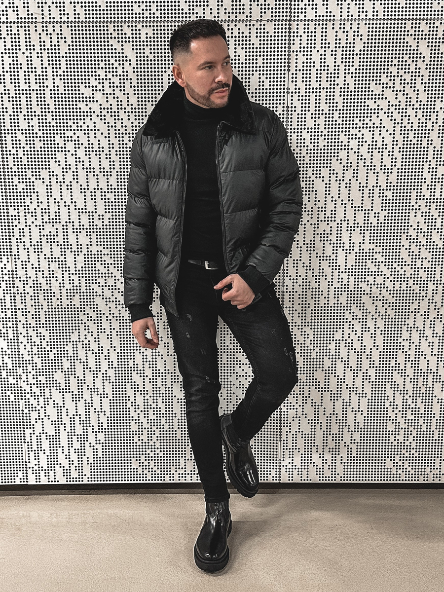 A felhasználók véleménye Fekete steppelt férfi téli bőrdzseki Bolf M8301